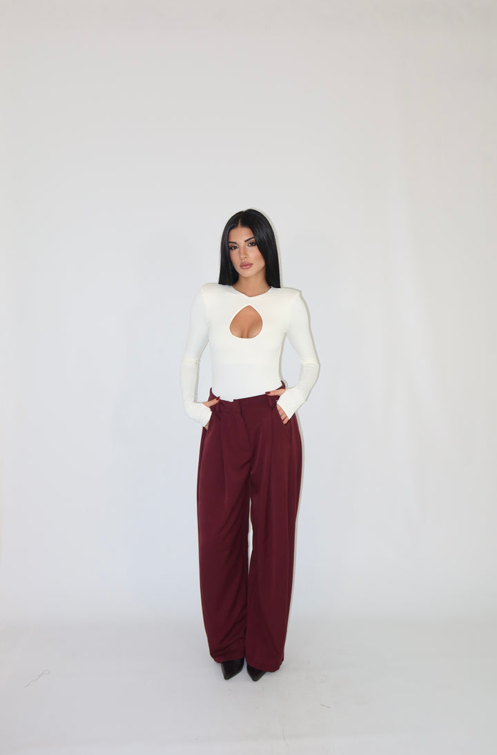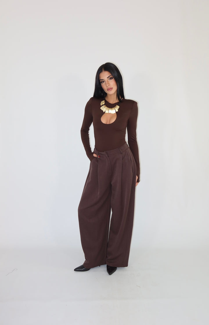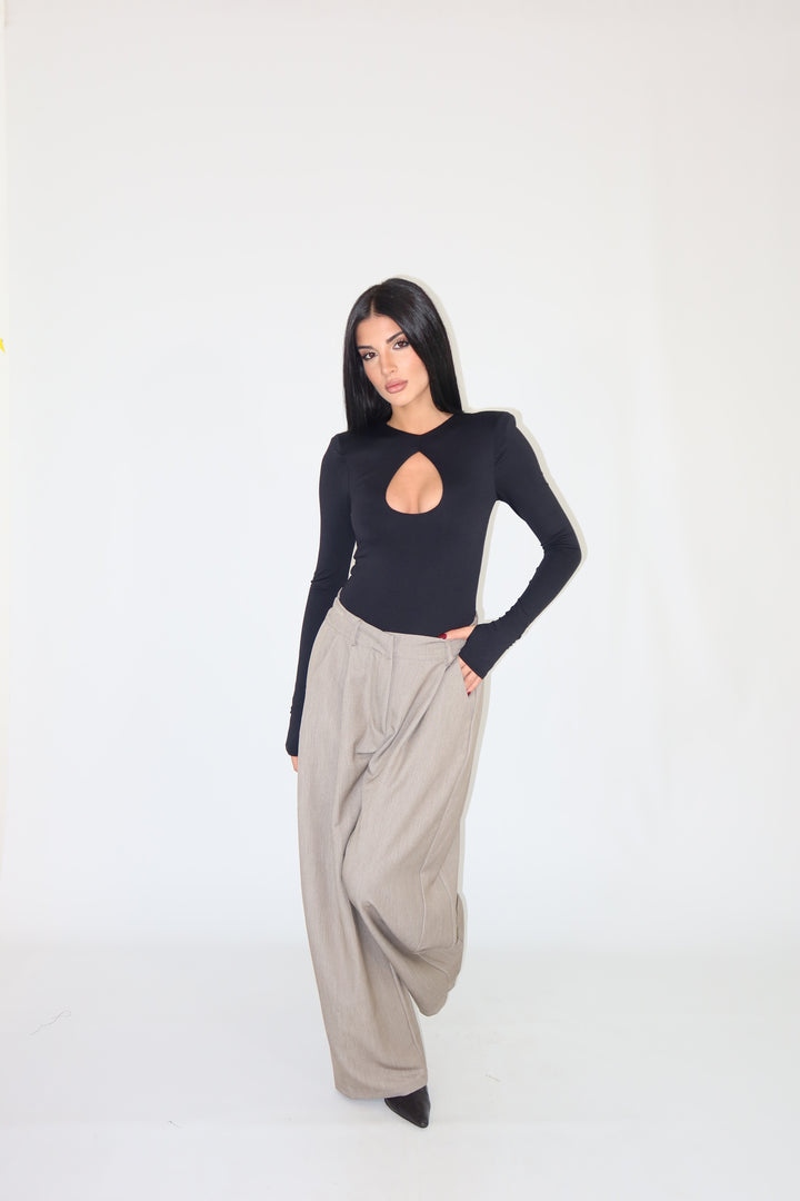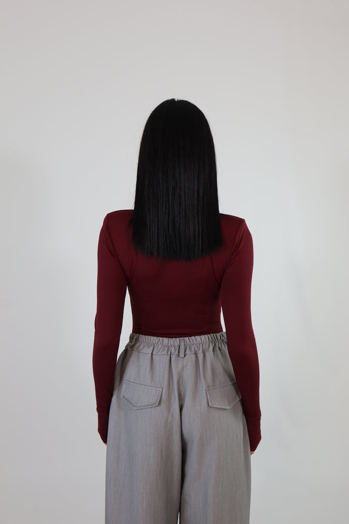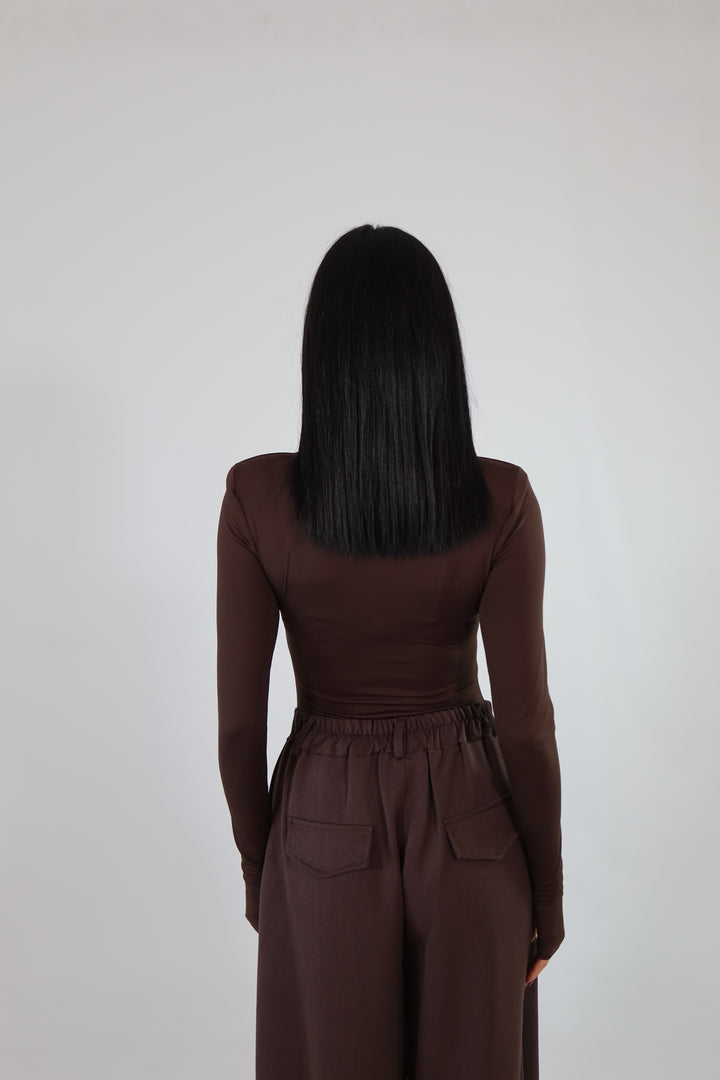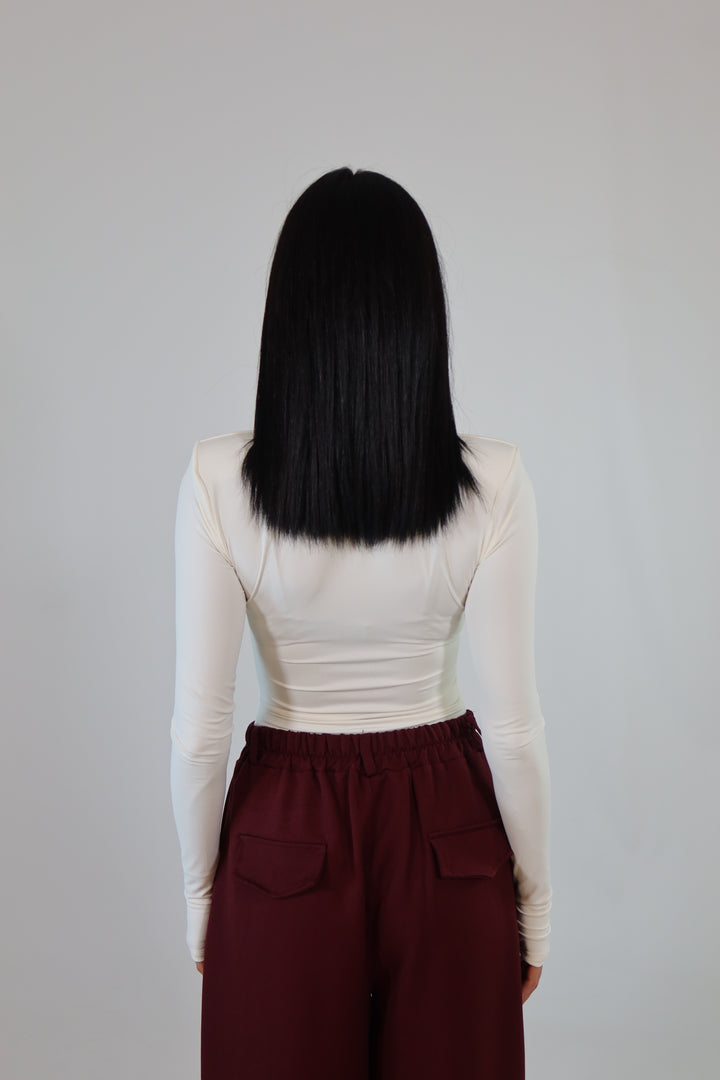 Body in tessuto aderente ed elasticizzato, con maniche a guanto, spalline imbottite e scollo sul seno. Si adattano da una XS ad una taglia M/L.