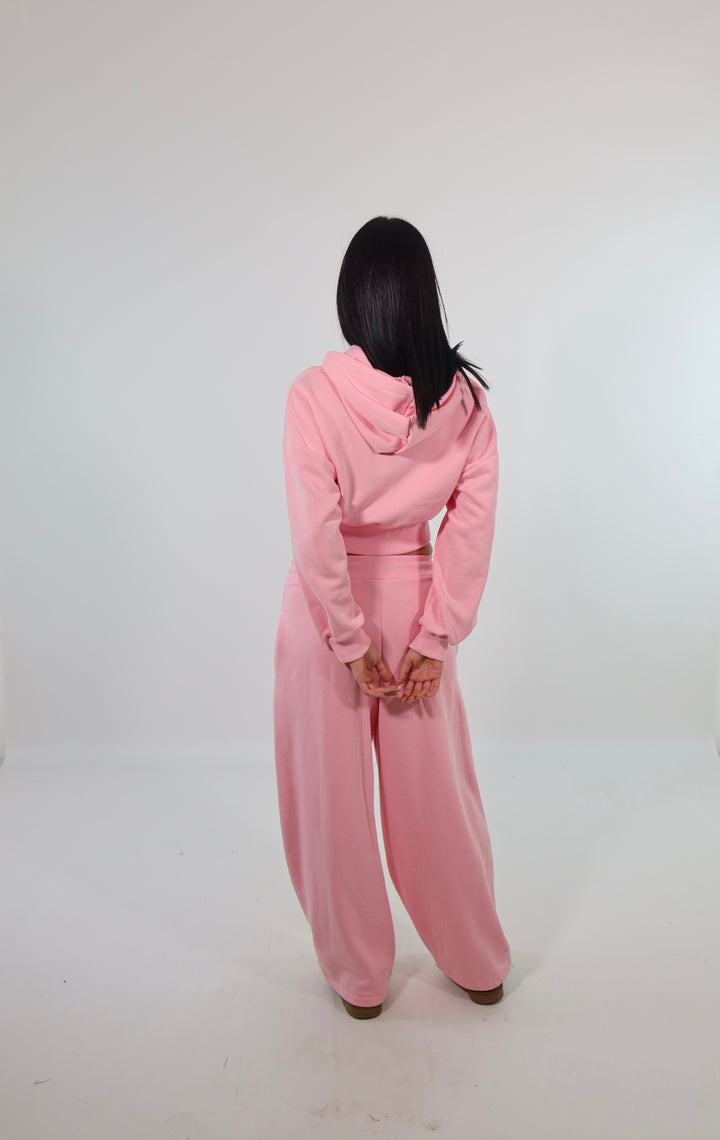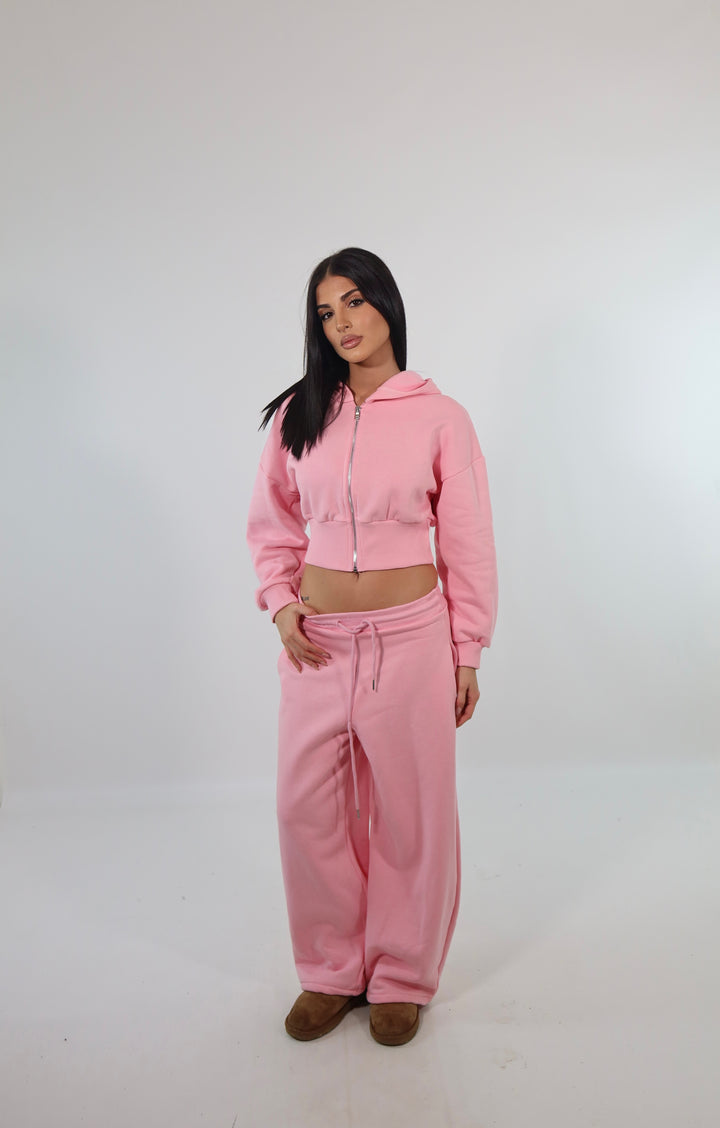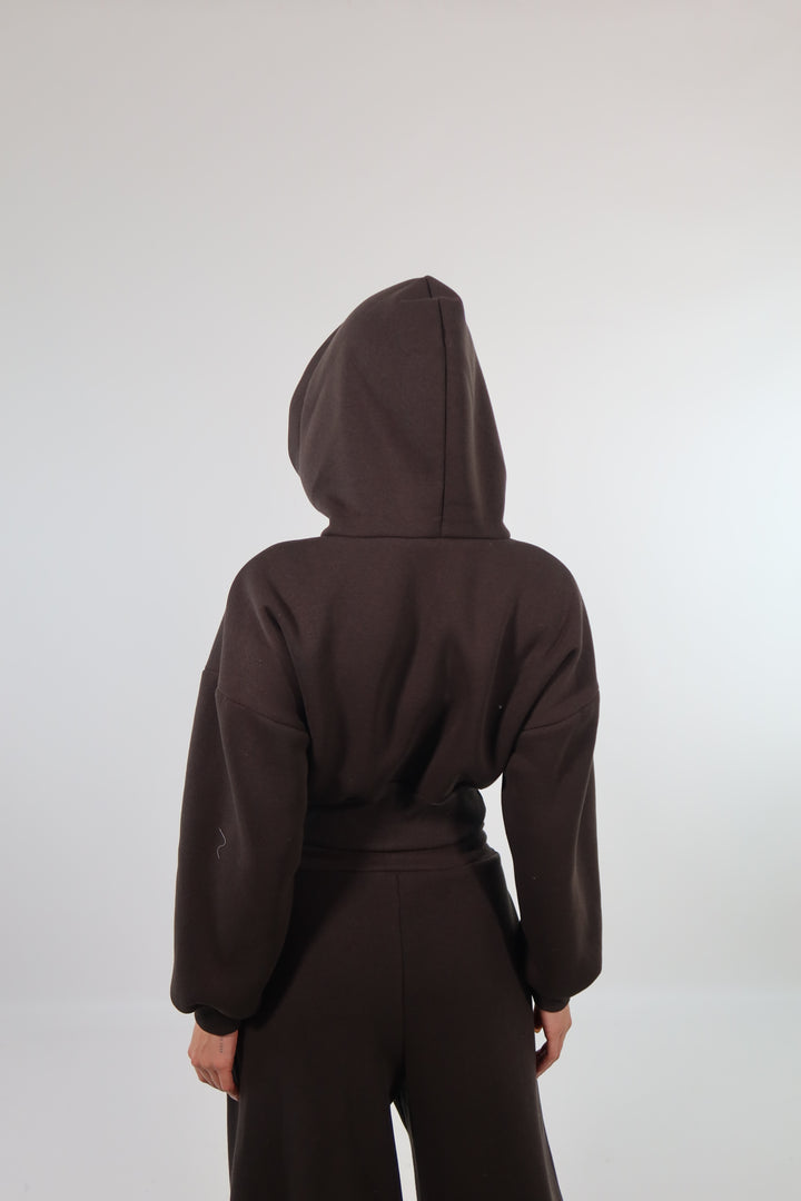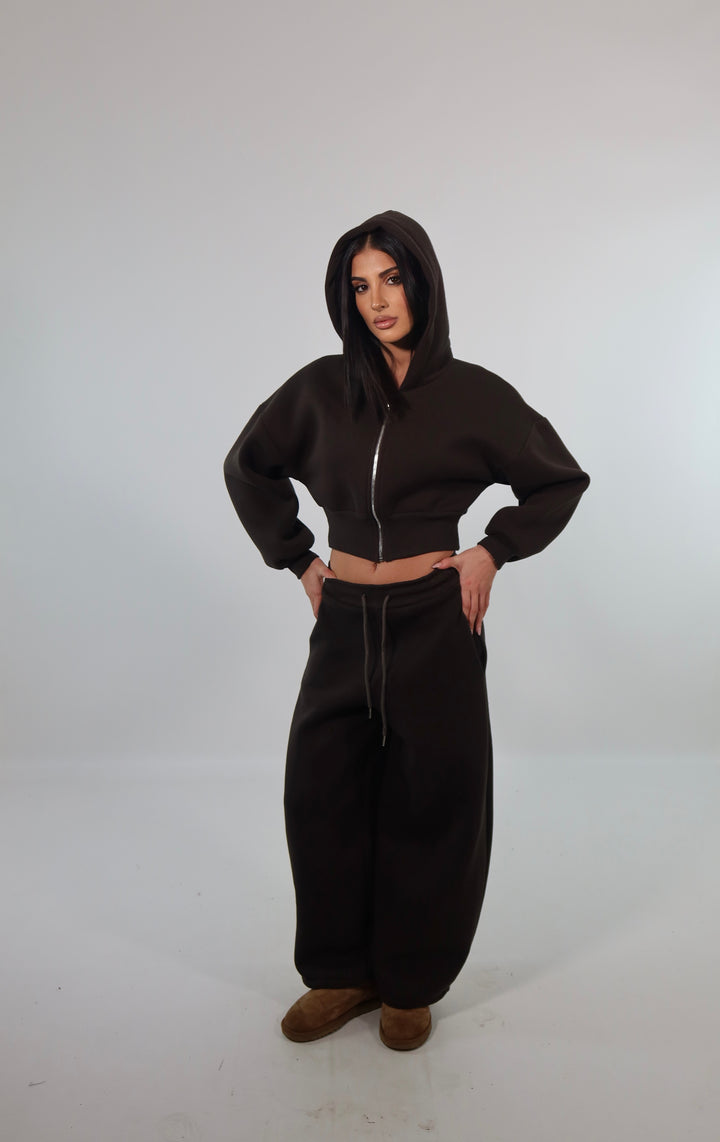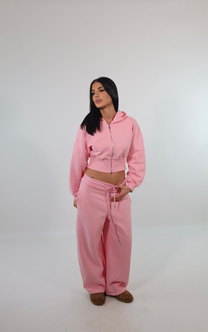 Coordinato caldo di tuta, giacca con zip e cappuccio e pantalone dal fit morbido. Si adatta da una XS ad una taglia M/L. Per rif. la modella è alta 1.72.
