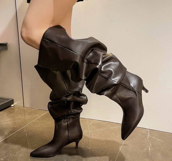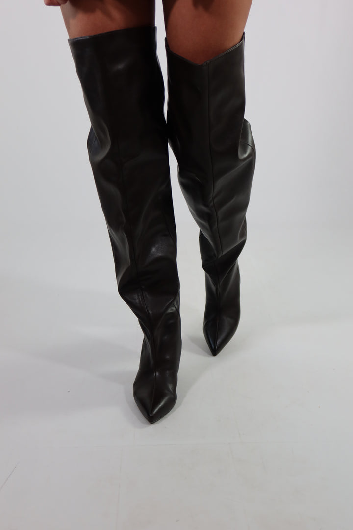 Stivale in ecopelle dalla calzata regolare, può essere indossato sia sul ginocchio che sotto il ginocchio.