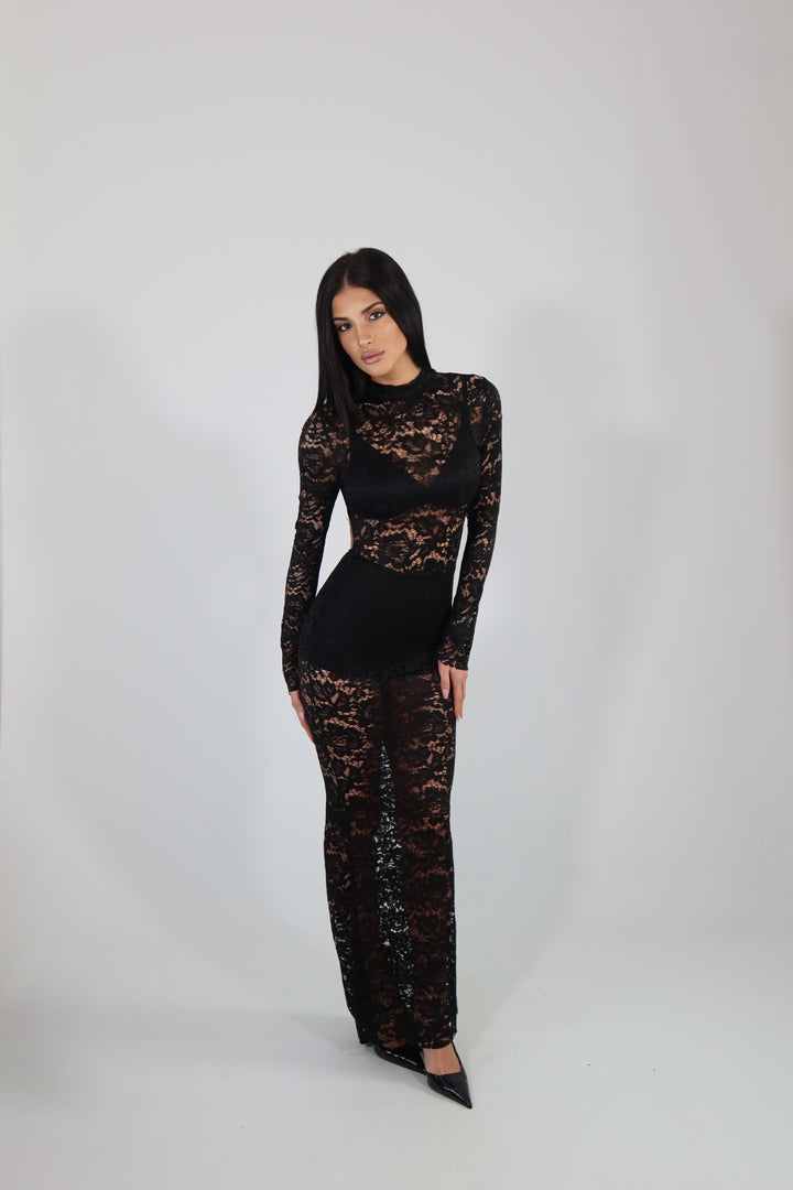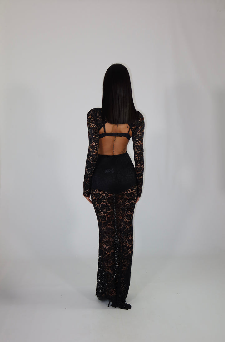 Dress lungo di pizzo con culotte cucita. Si adatta da una XS ad una taglia M/L, per rif. la modella è alta 1.72.