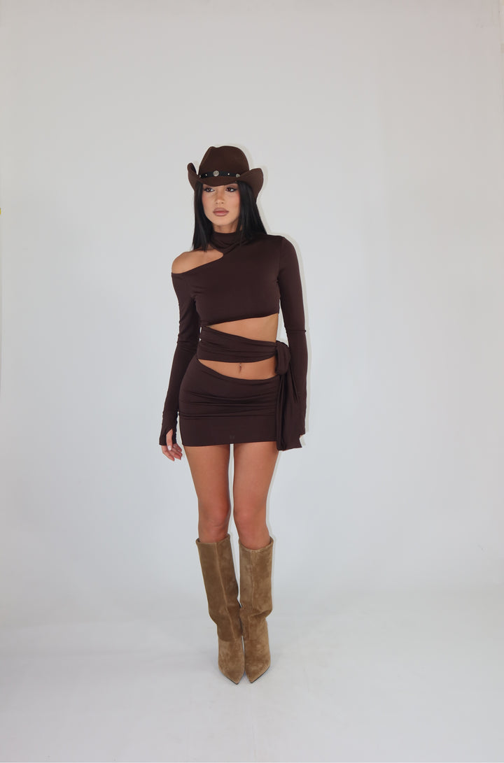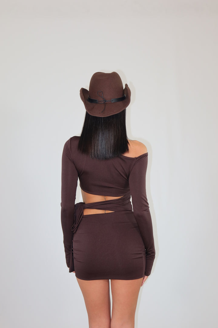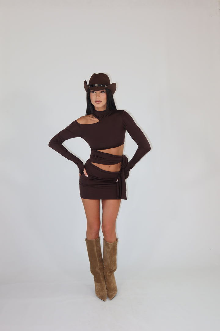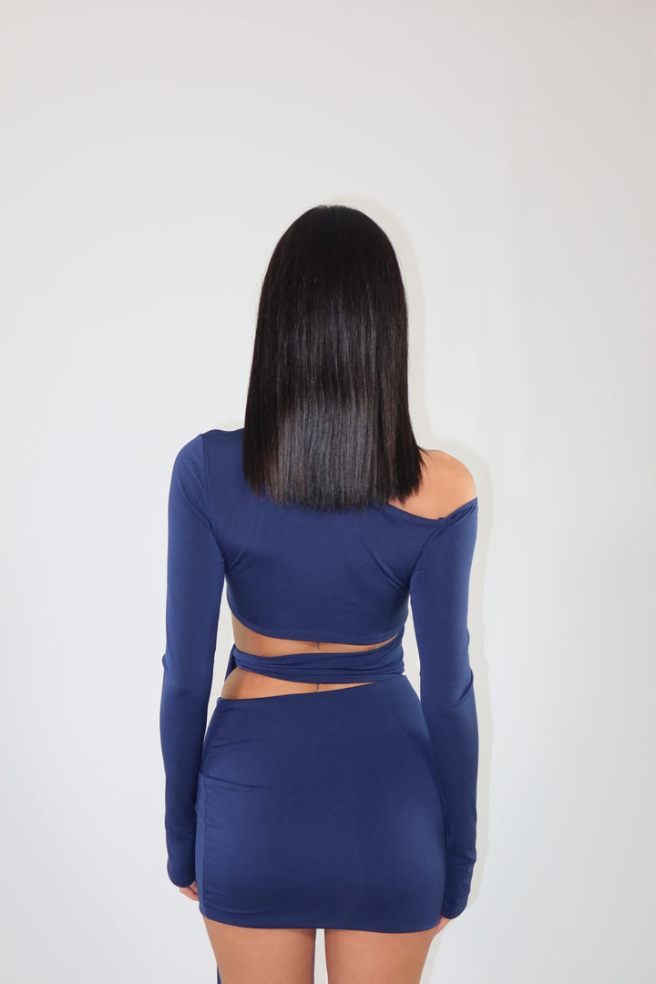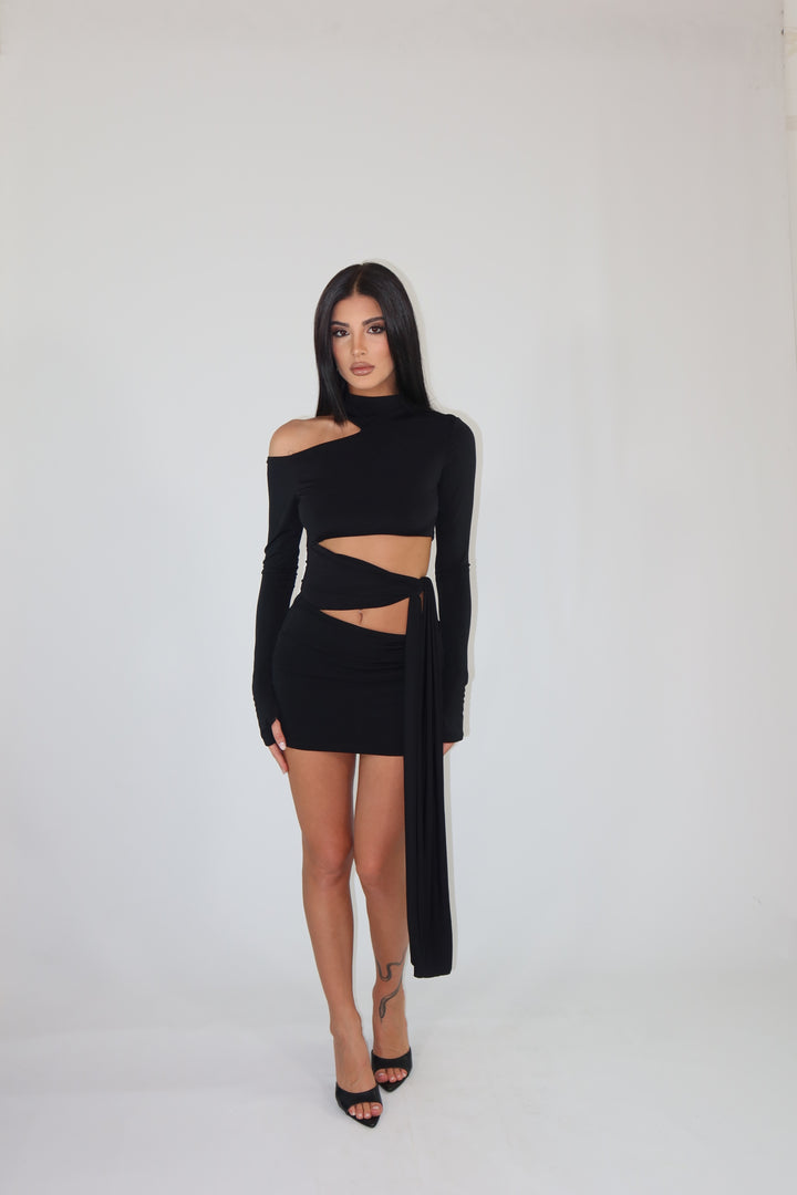 Dress cut out in tessuto aderente ed elasticizzato. Si adatta dalla XS ad una taglia M/L.
