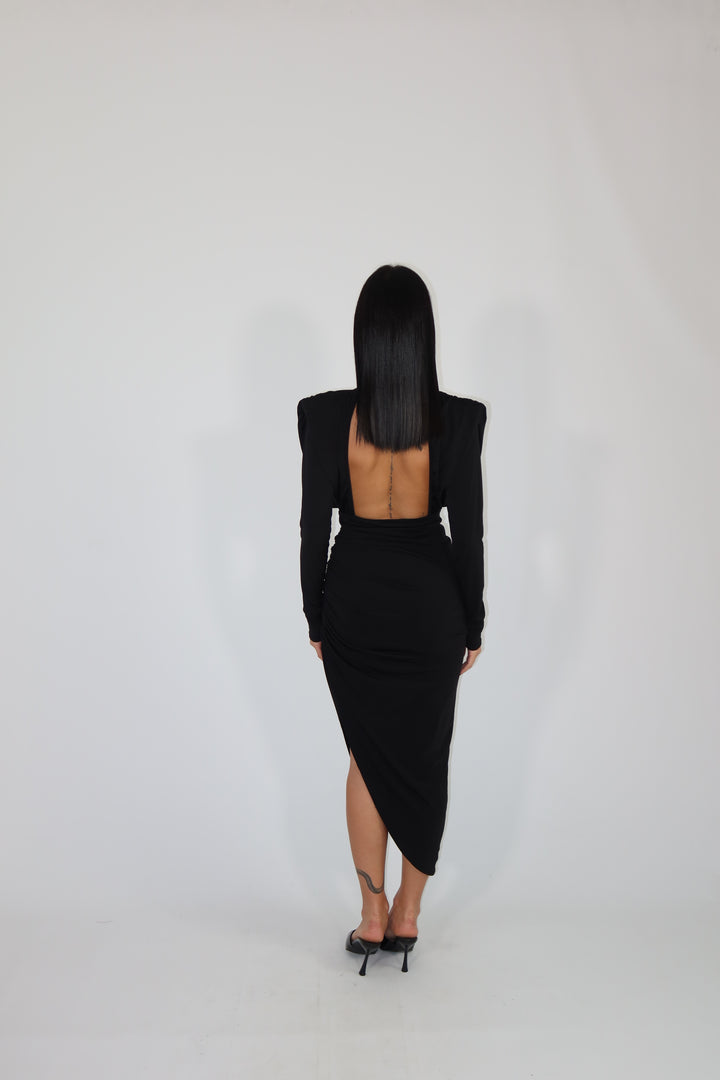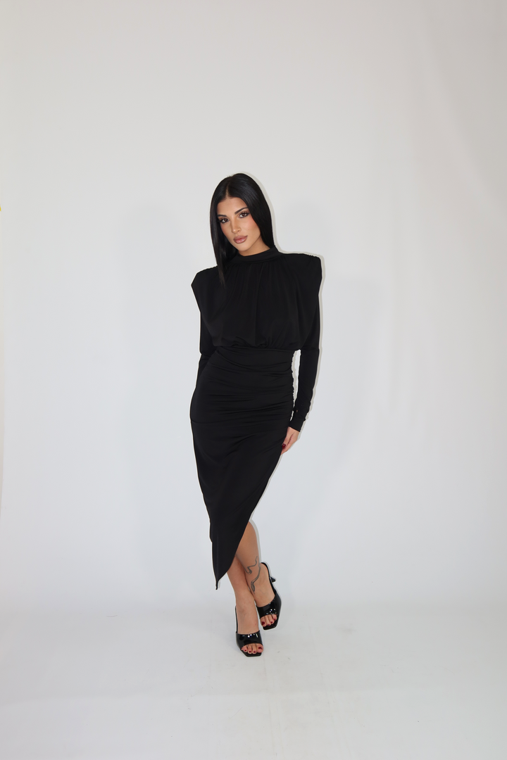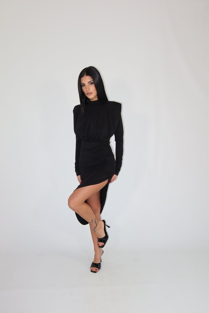 Dress in tessuto aderente ed elasticizzato con spalline rinforzate e spacco asimmetrico. Si adatta dalla XS ad una taglia M/L.