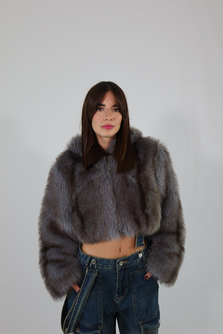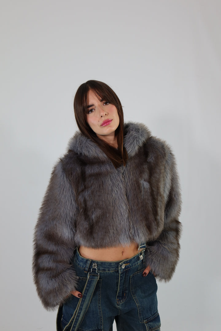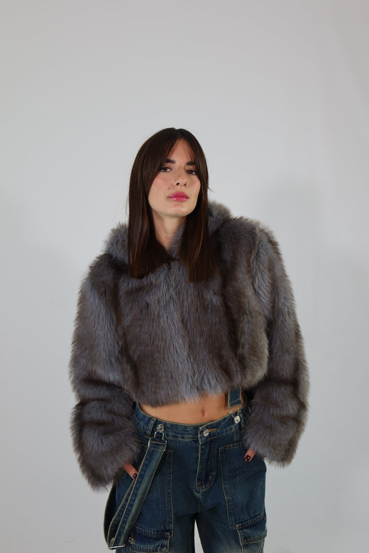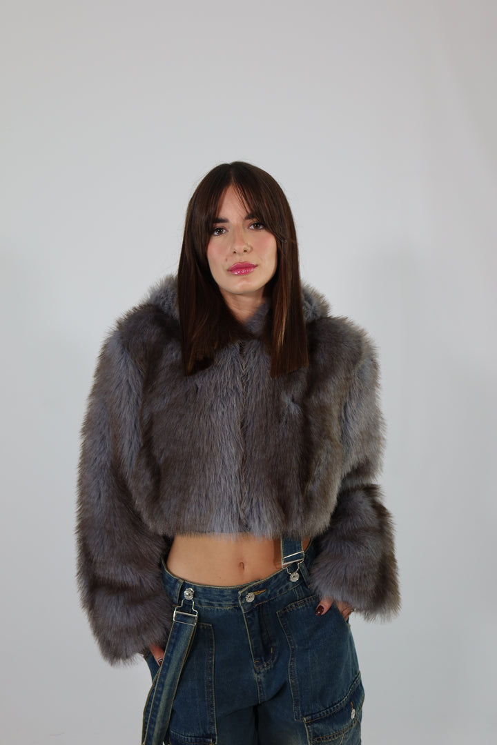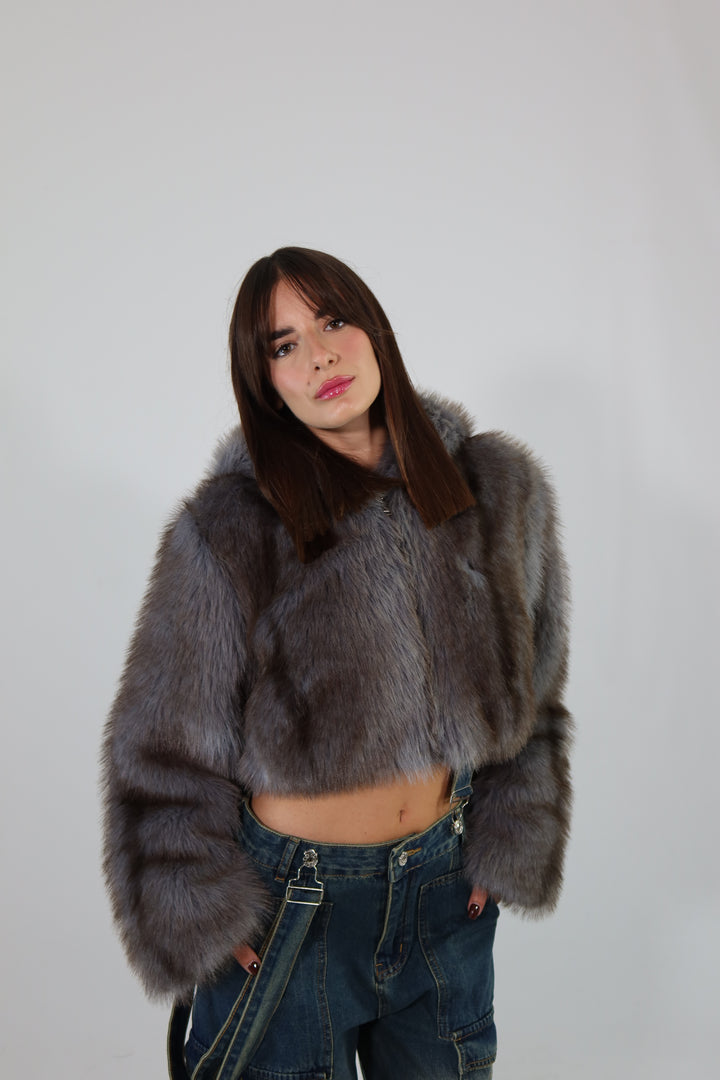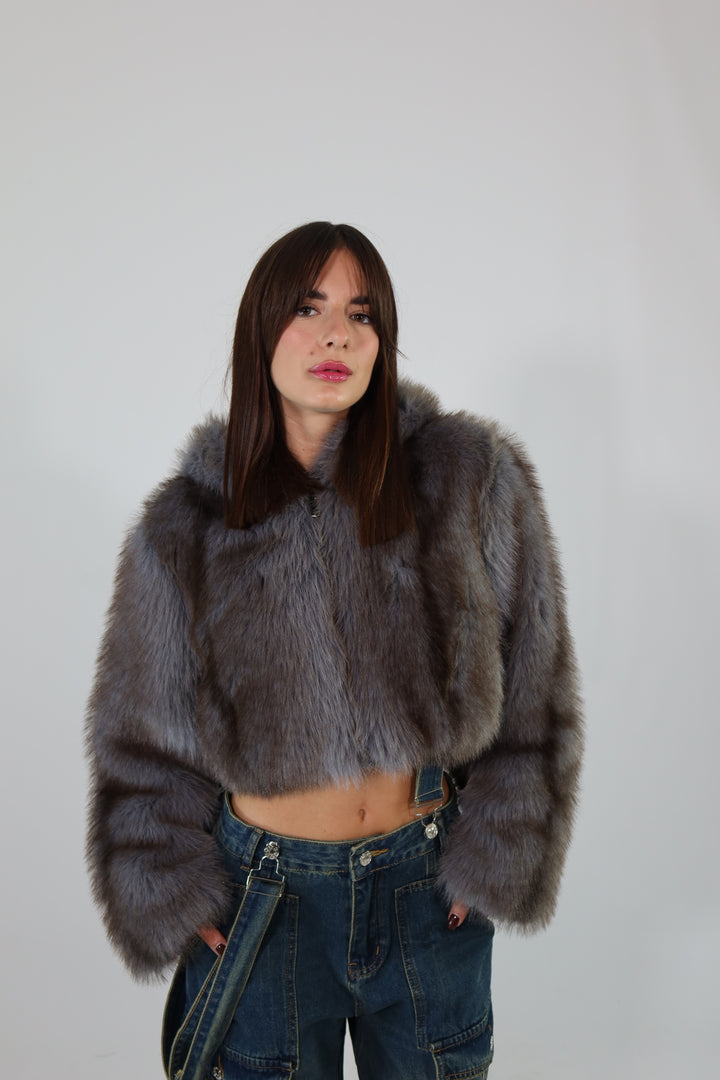 Ecofur crop con zip e cappuccio.