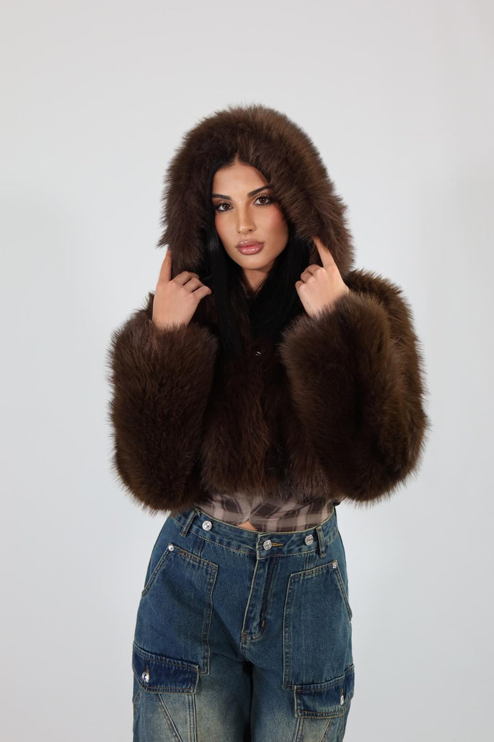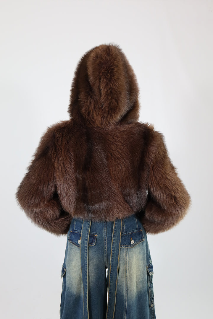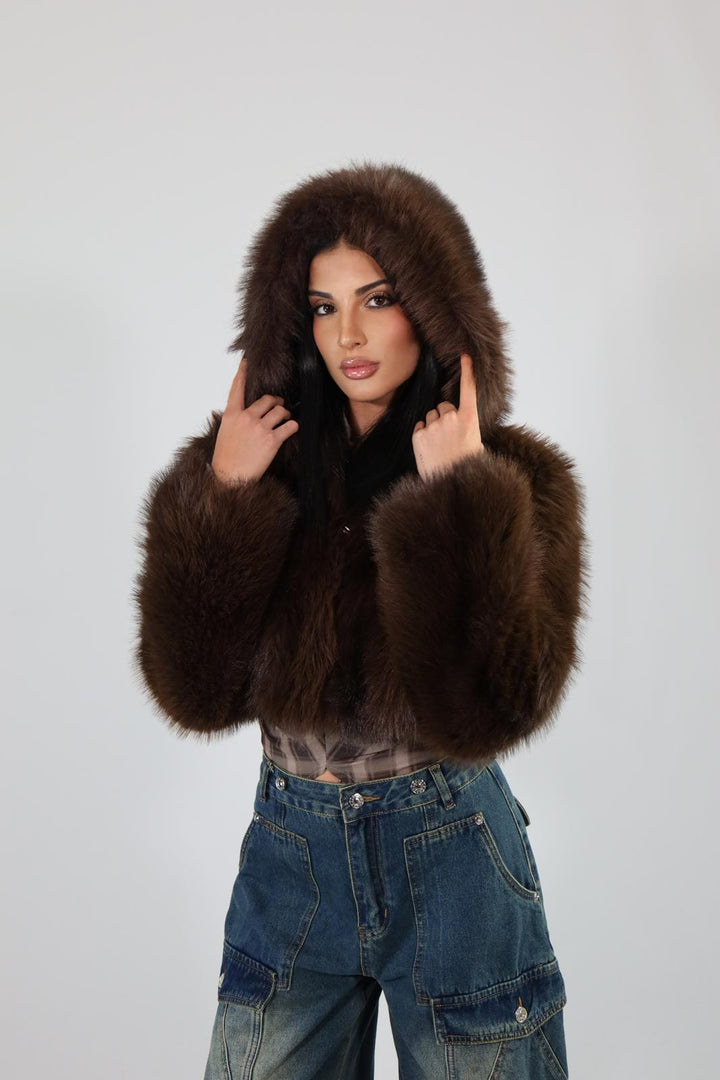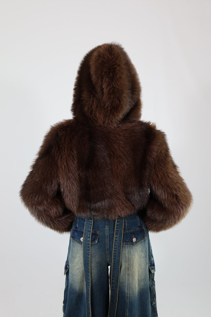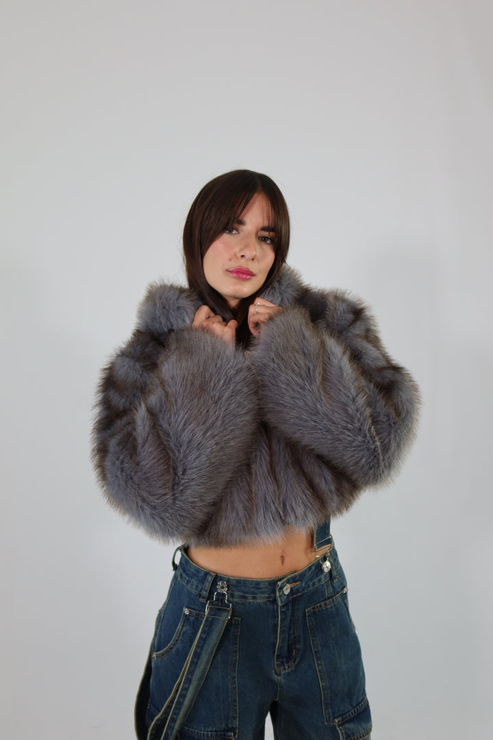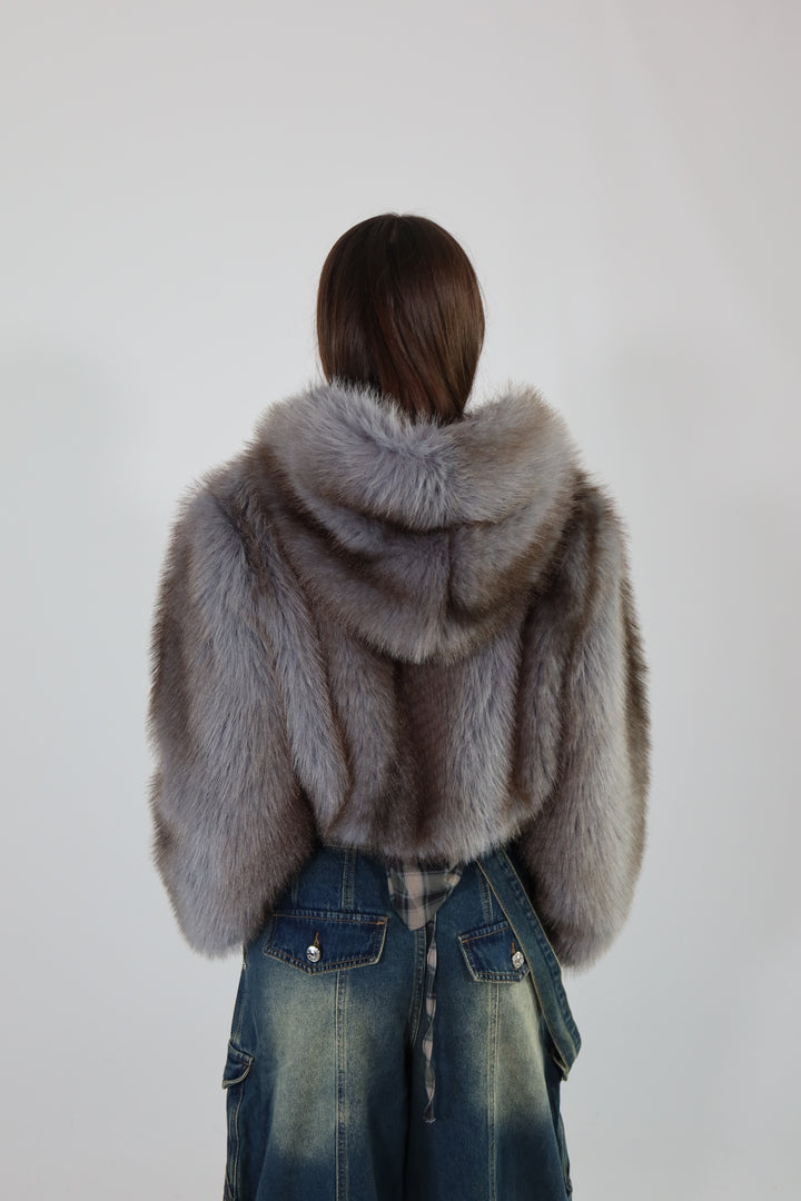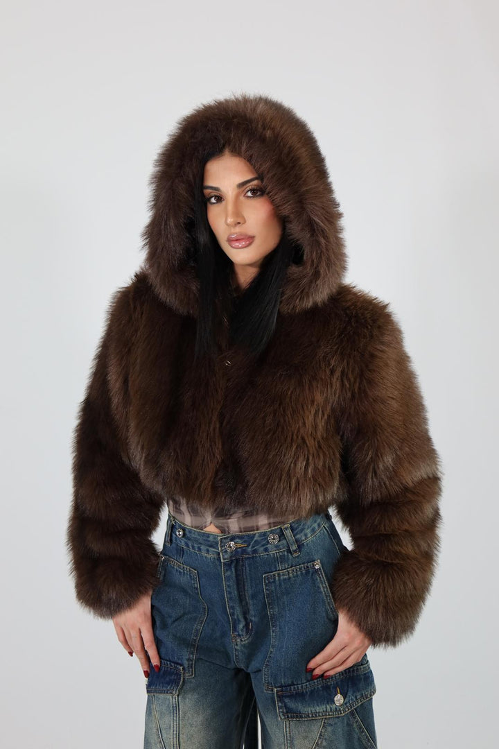 Ecofur crop con zip e cappuccio.