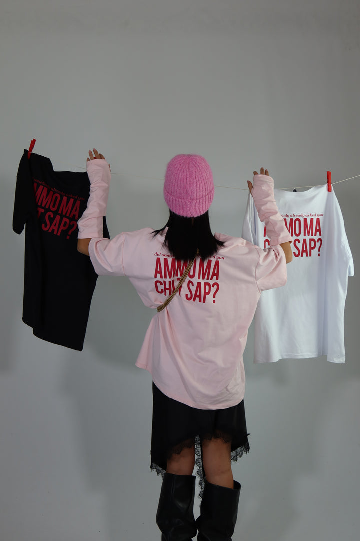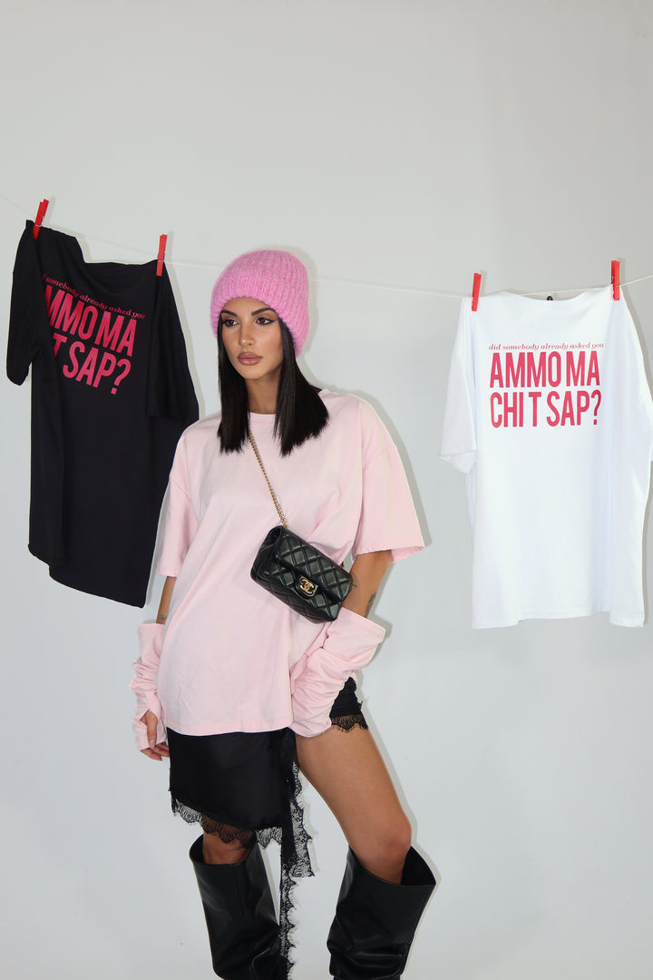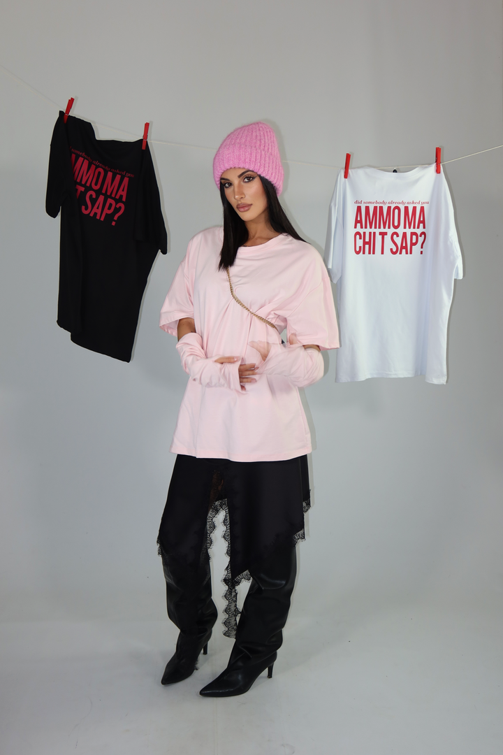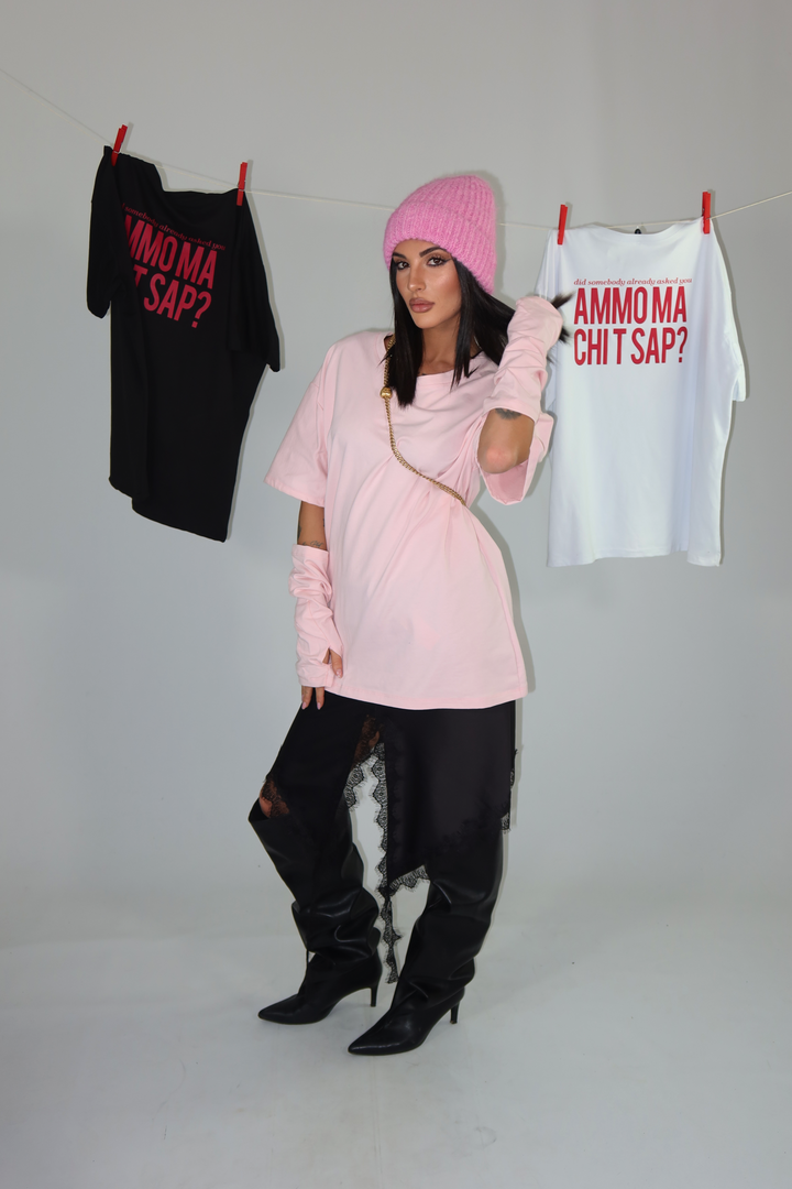 Felpina garzata over a manica corta con manicotti e scritta sulla schiena.