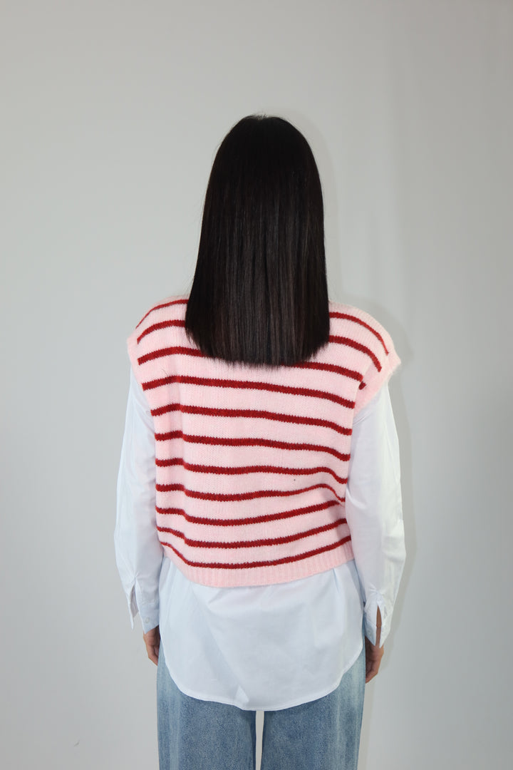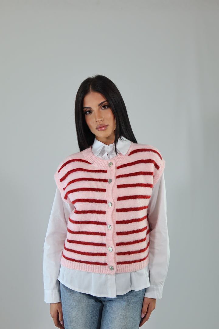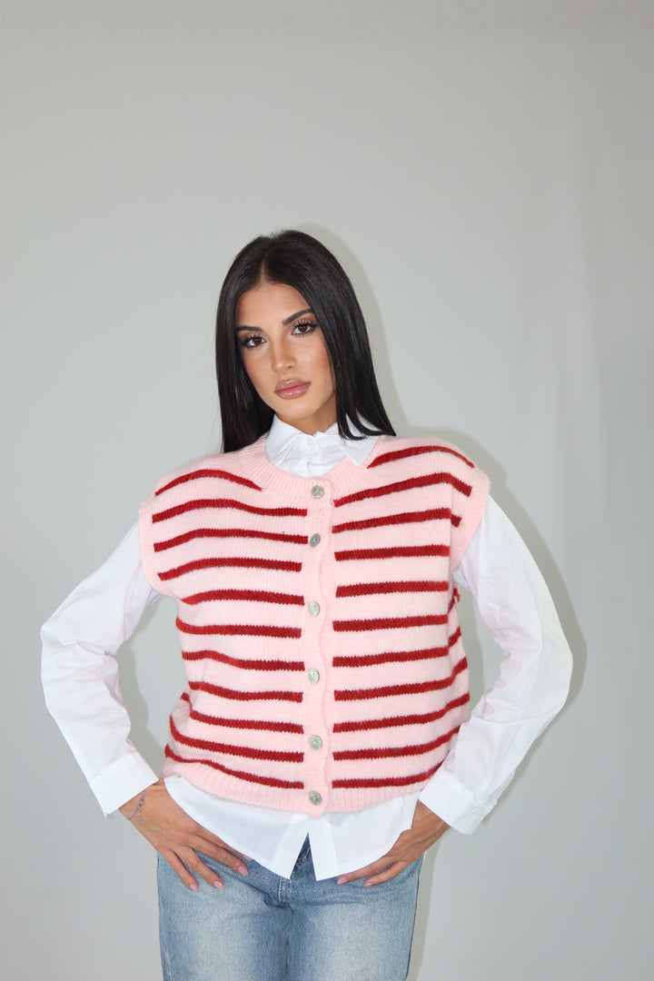 Gilet rosa e rosso a contrasto dal tessuto morbido.