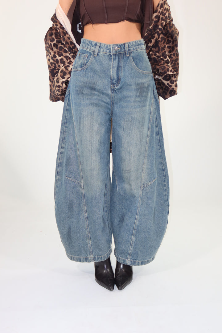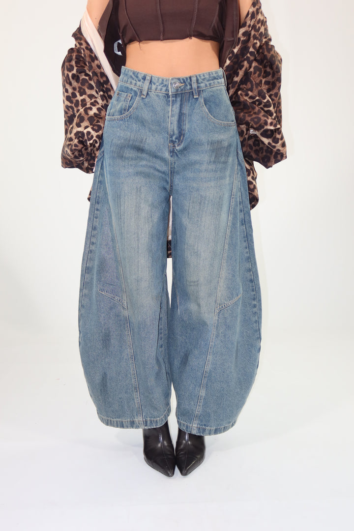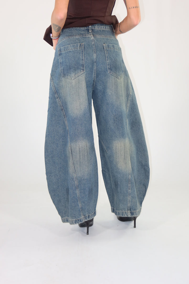 Jeans over, la modella indossa la taglia S ed è alta 1.72.
