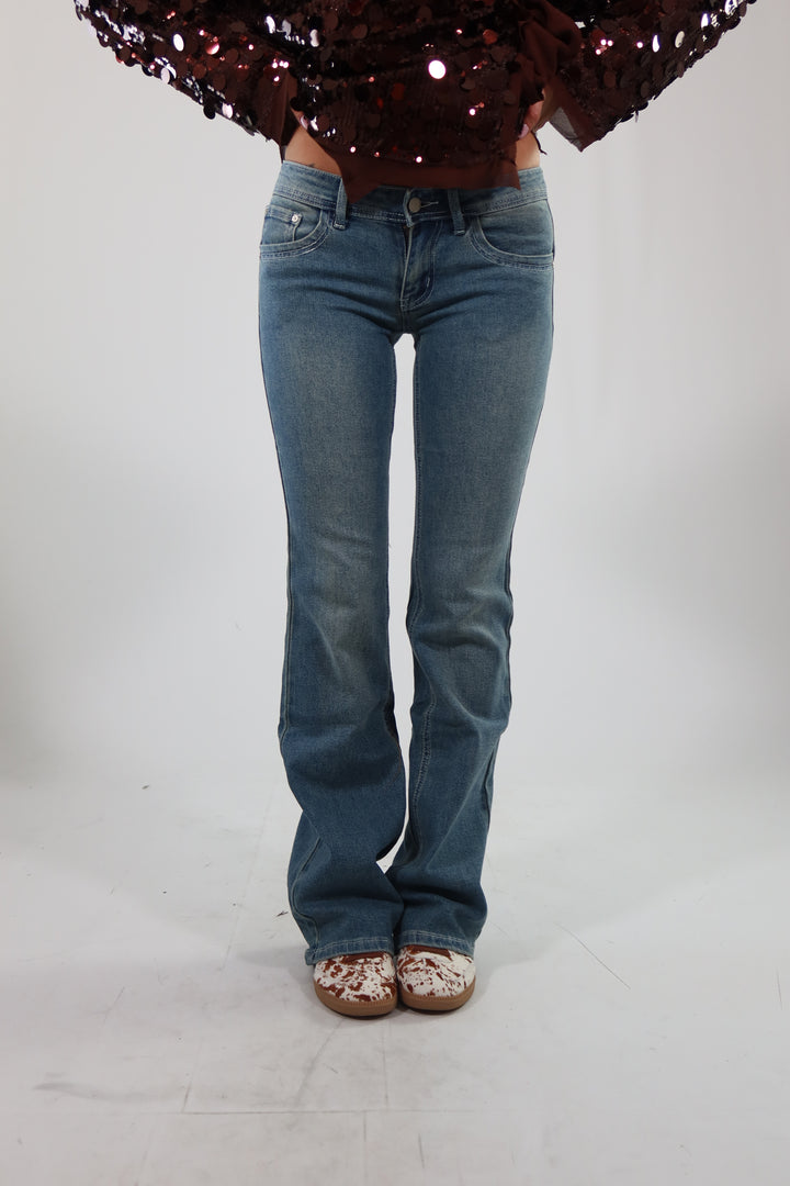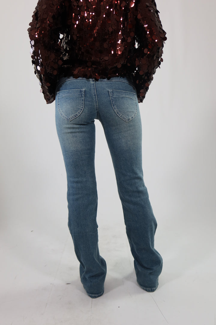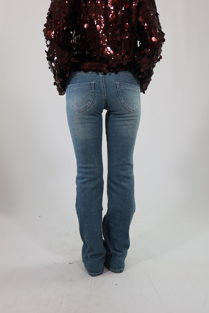 Jeans a vita bassa effetto push up, la modella è alta 1.72 ed indossa la taglia XS.