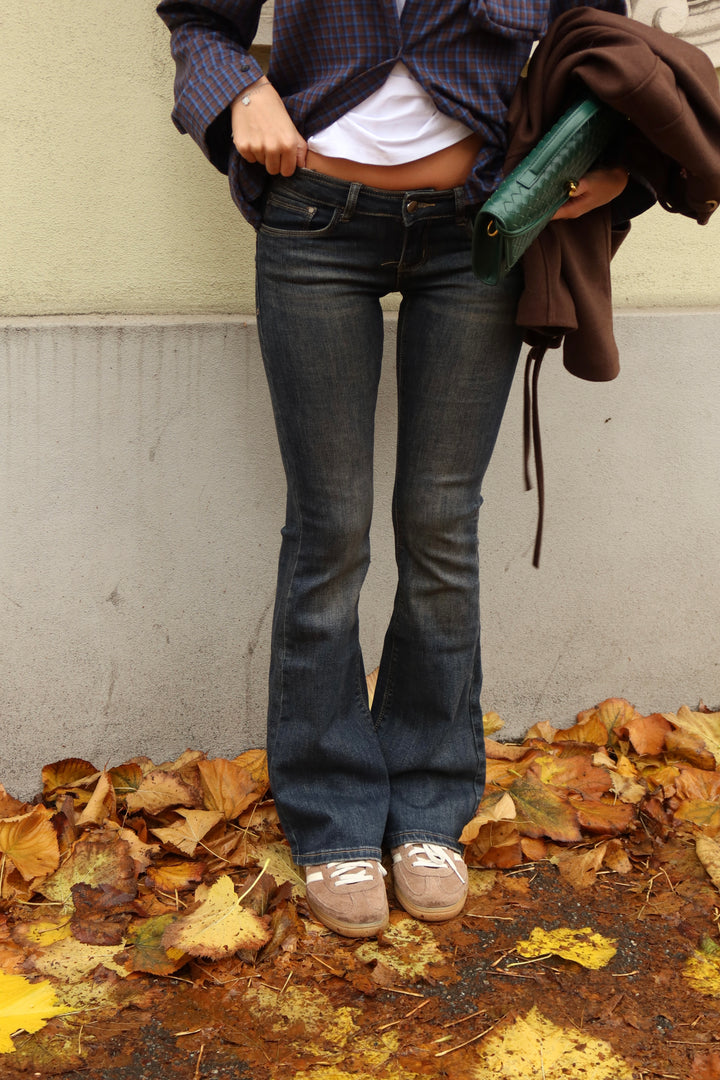 Jeans a vita bassa lavaggio vintage. La modella indossa la taglia XS ed è alta 1.72.
