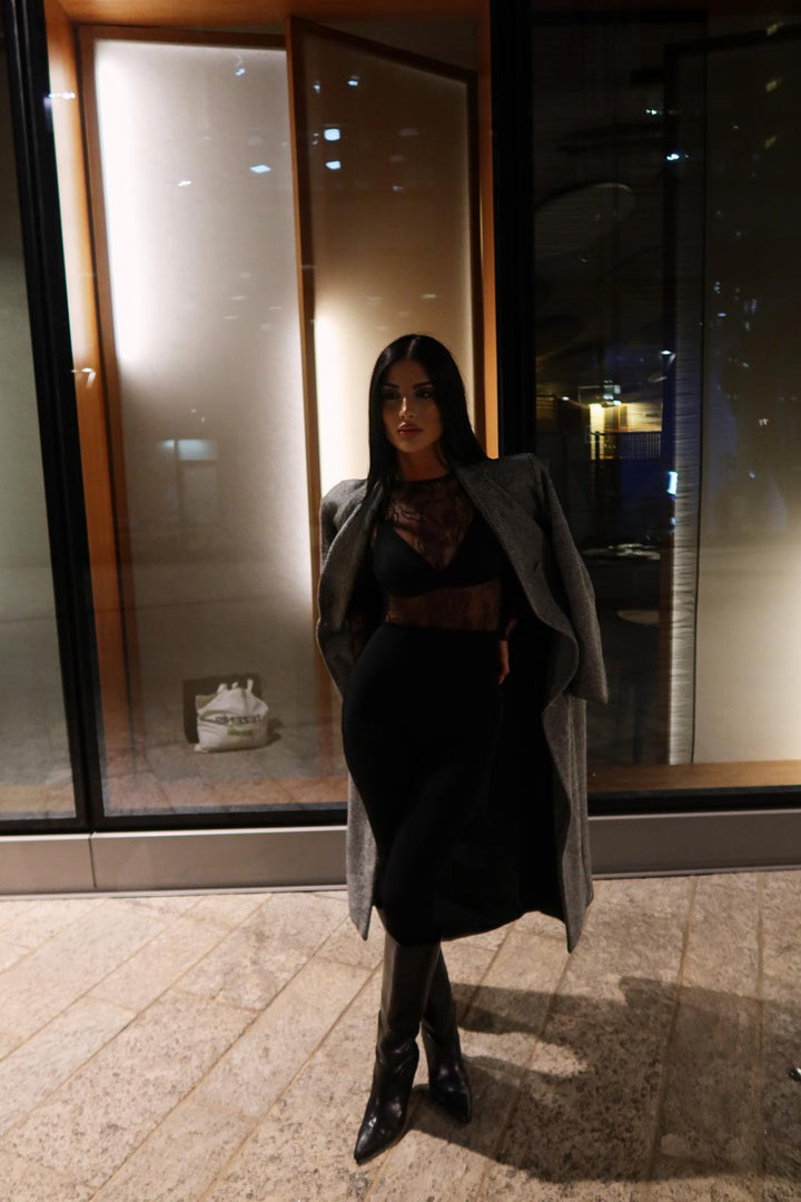 Jump in tessuto aderente ed elasticizzato trasparente e con pizzo nella parte superiore. Grazie al tessuto elasticizzato si adatta dalla XS ad una taglia M/L. Per ref. Martina è una taglia XS ed è alta 1.72.
