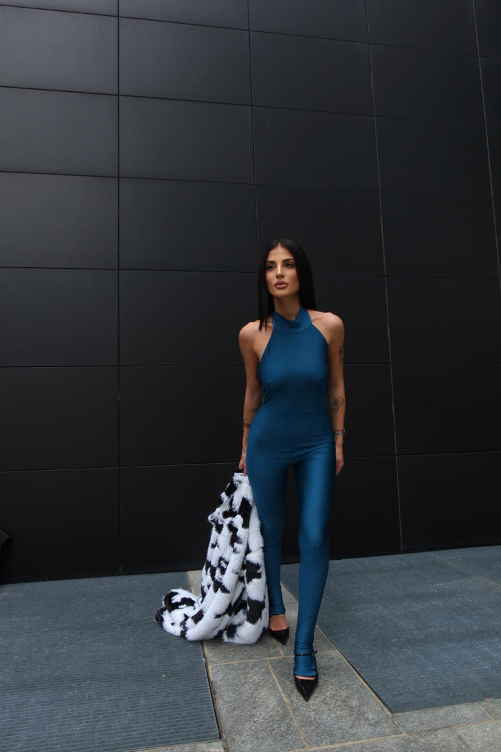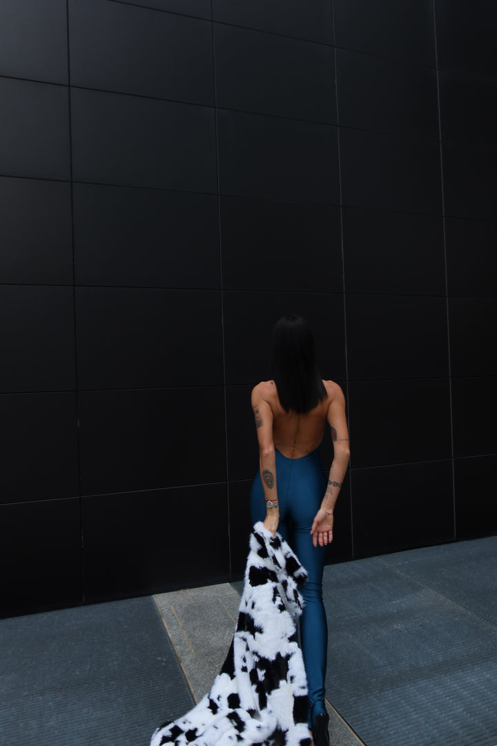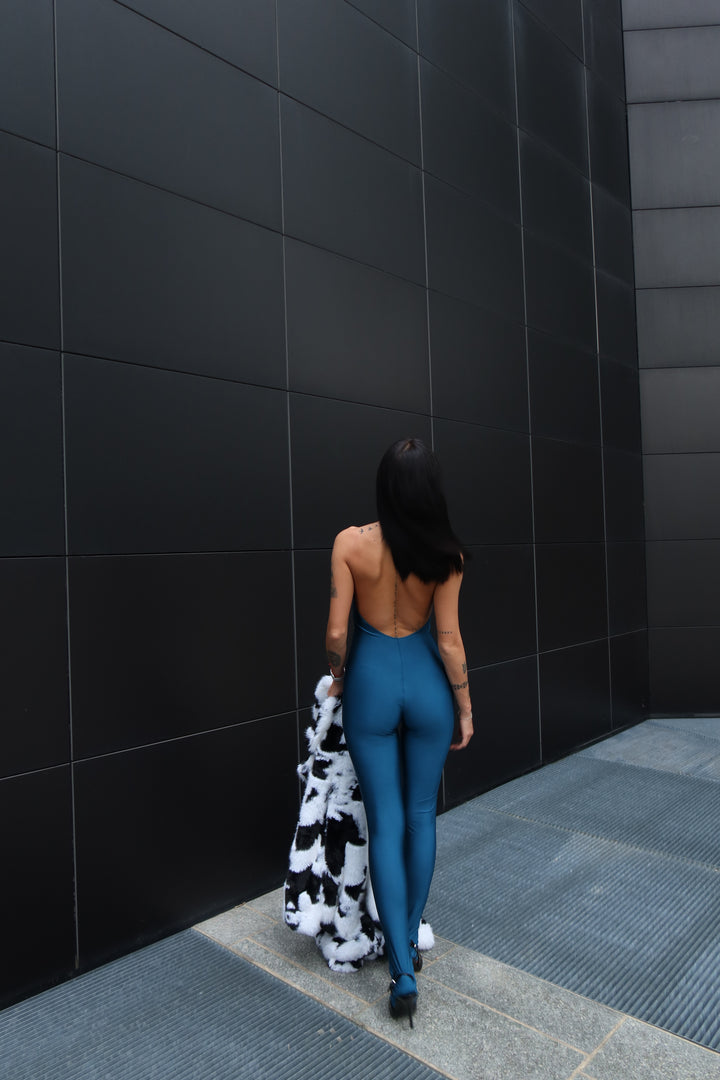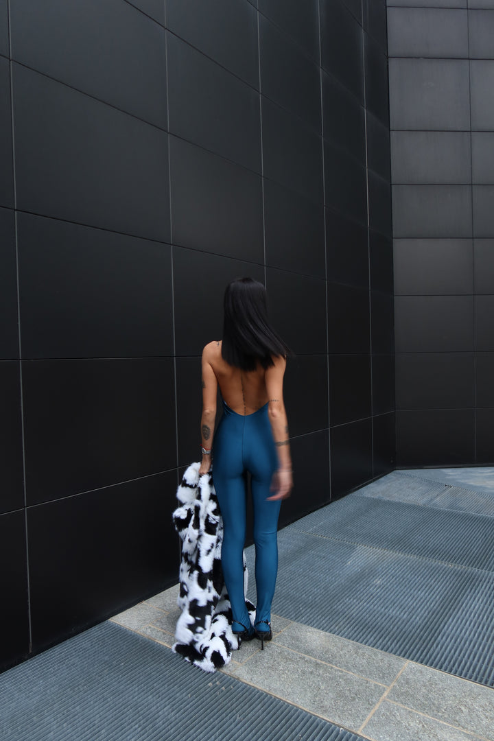 Jump in tessuto aderente ed elasticizzato con piede lungo e scollo sulla schiena. Si adatta dalla XS ad una taglia M/L. Per ref. la modella è una taglia XS ed è alta 1.72.