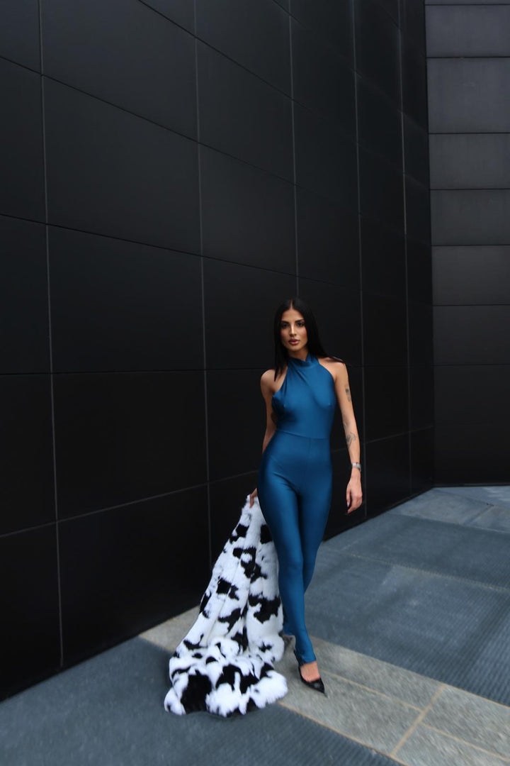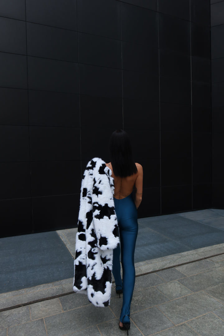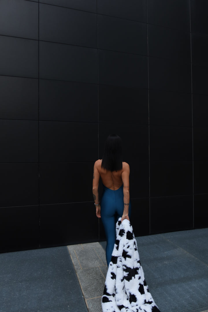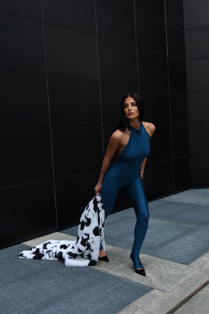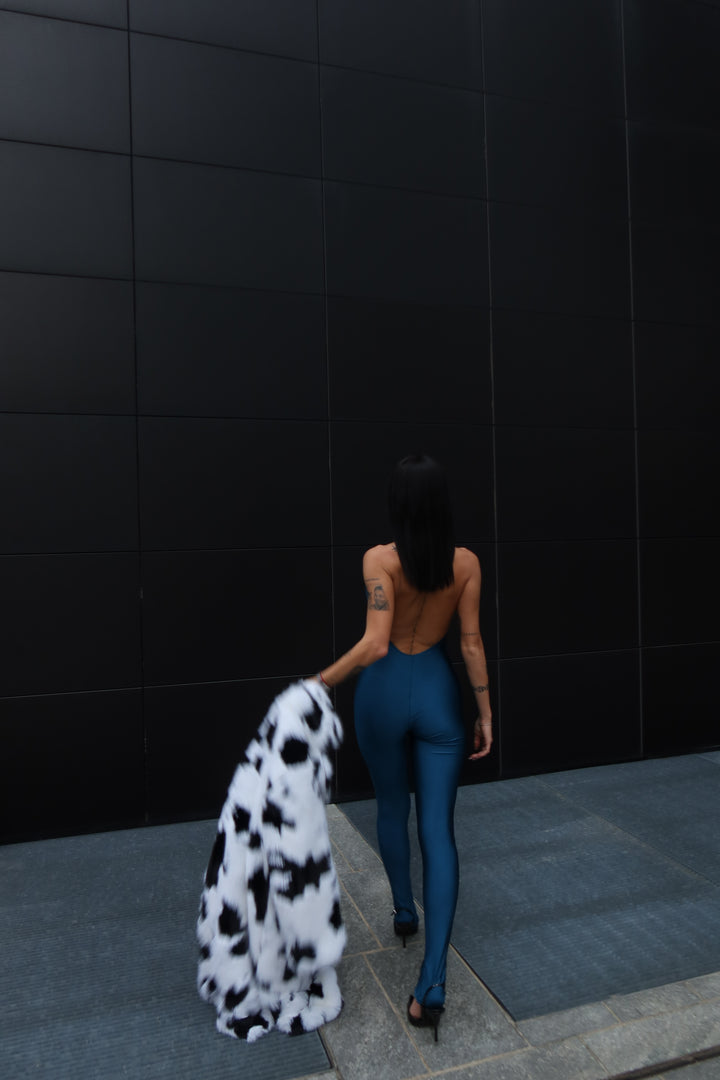 Jump in tessuto aderente ed elasticizzato con piede lungo e scollo sulla schiena. Si adatta dalla XS ad una taglia M/L. Per ref. la modella è una taglia XS ed è alta 1.72.