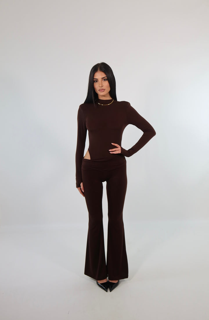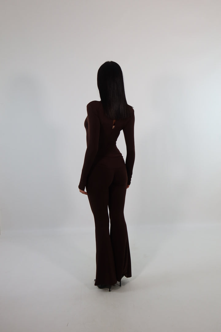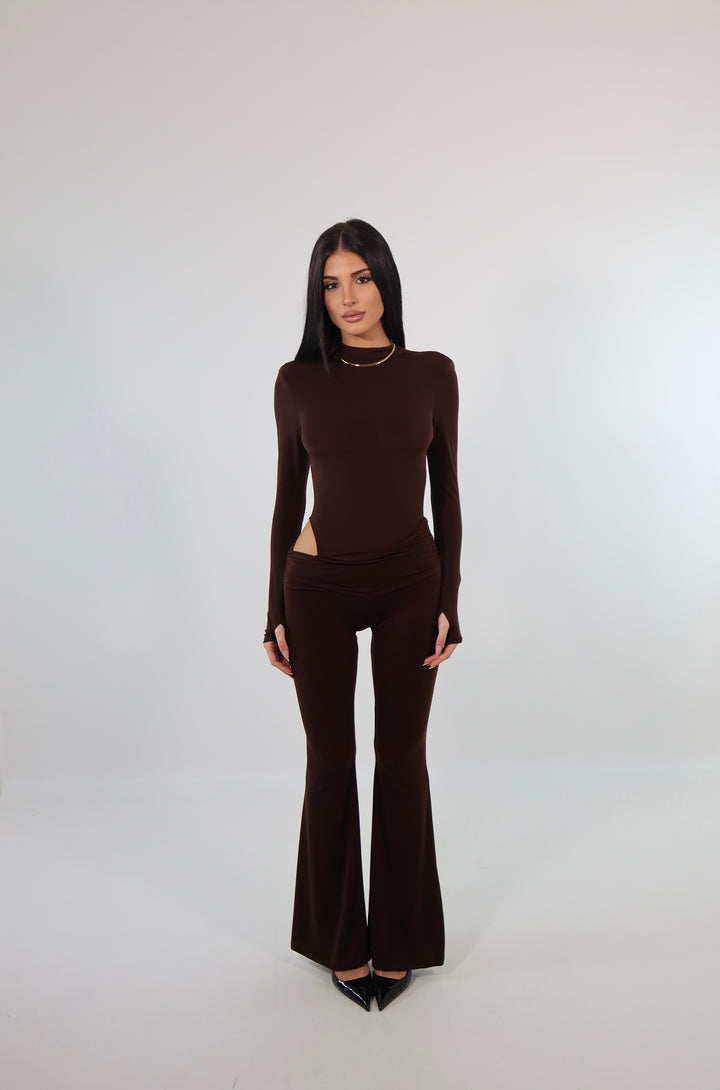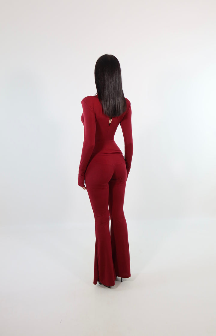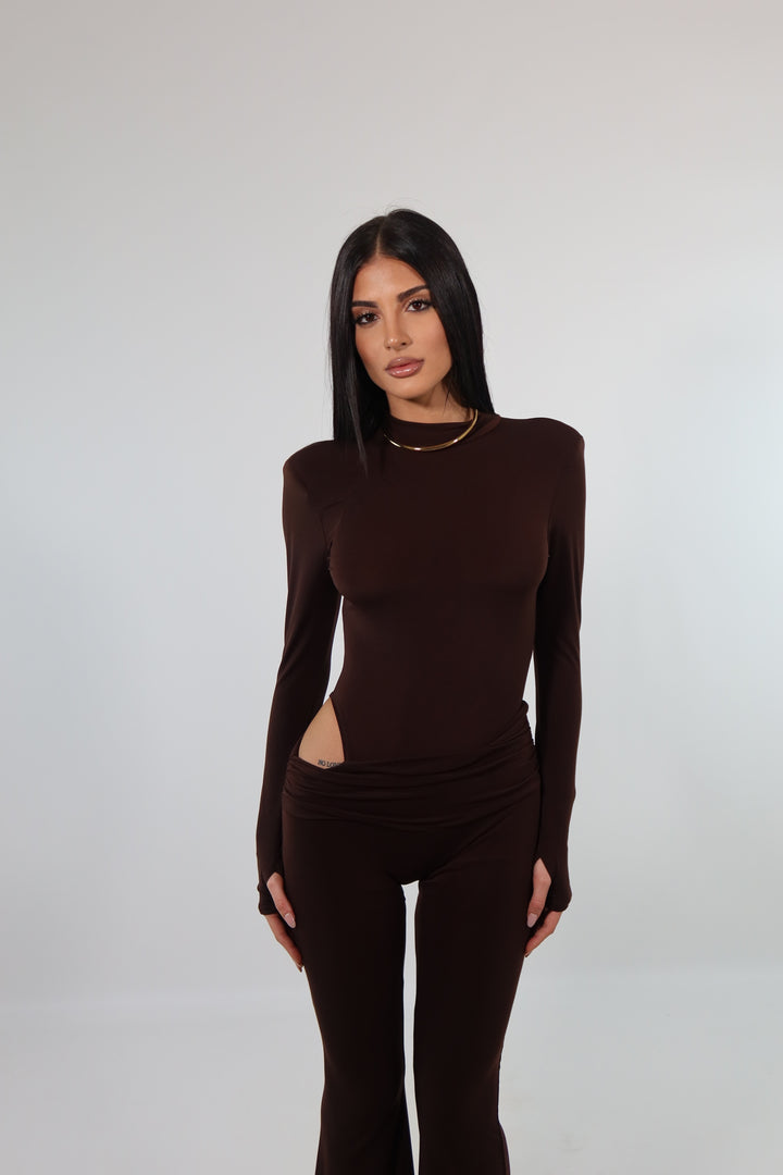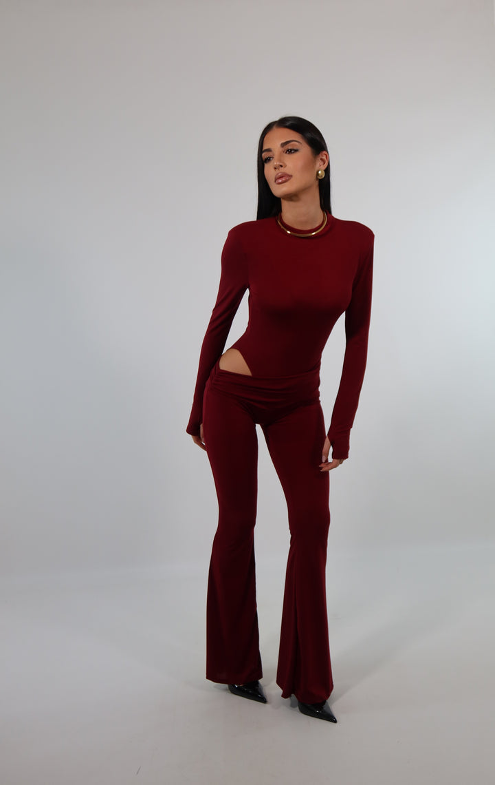 Jump in tessuto aderente ed elasticizzato con spalline rinforzate, manicotti e pantalone a zampa. Si adatta da una XS ad una taglia M/L. Per rif. la modella è una XS ed è alta 1.72.