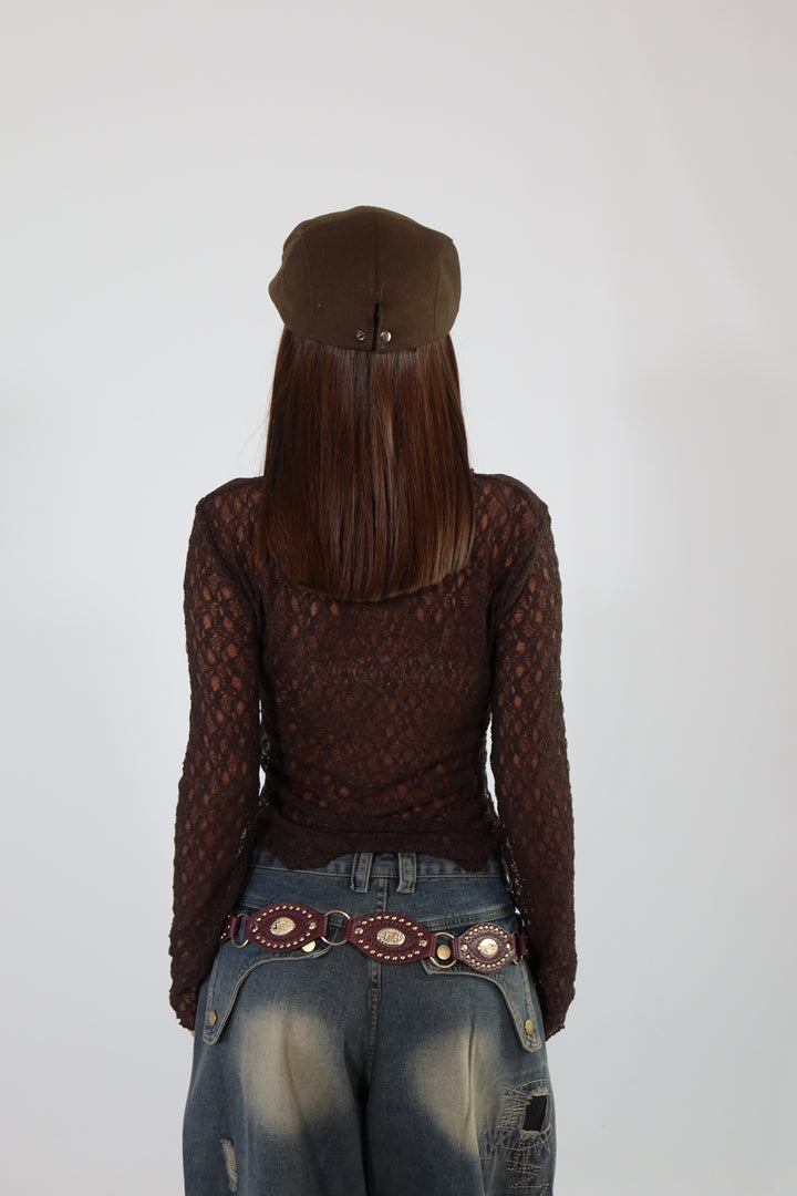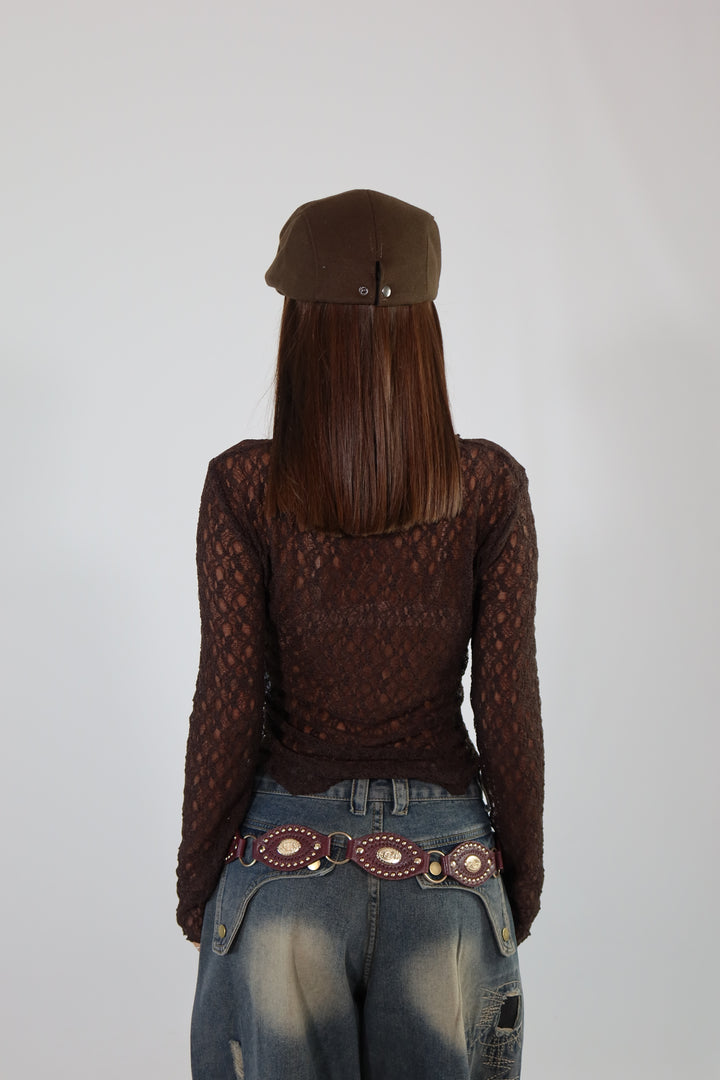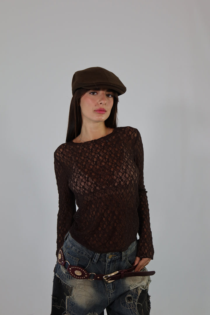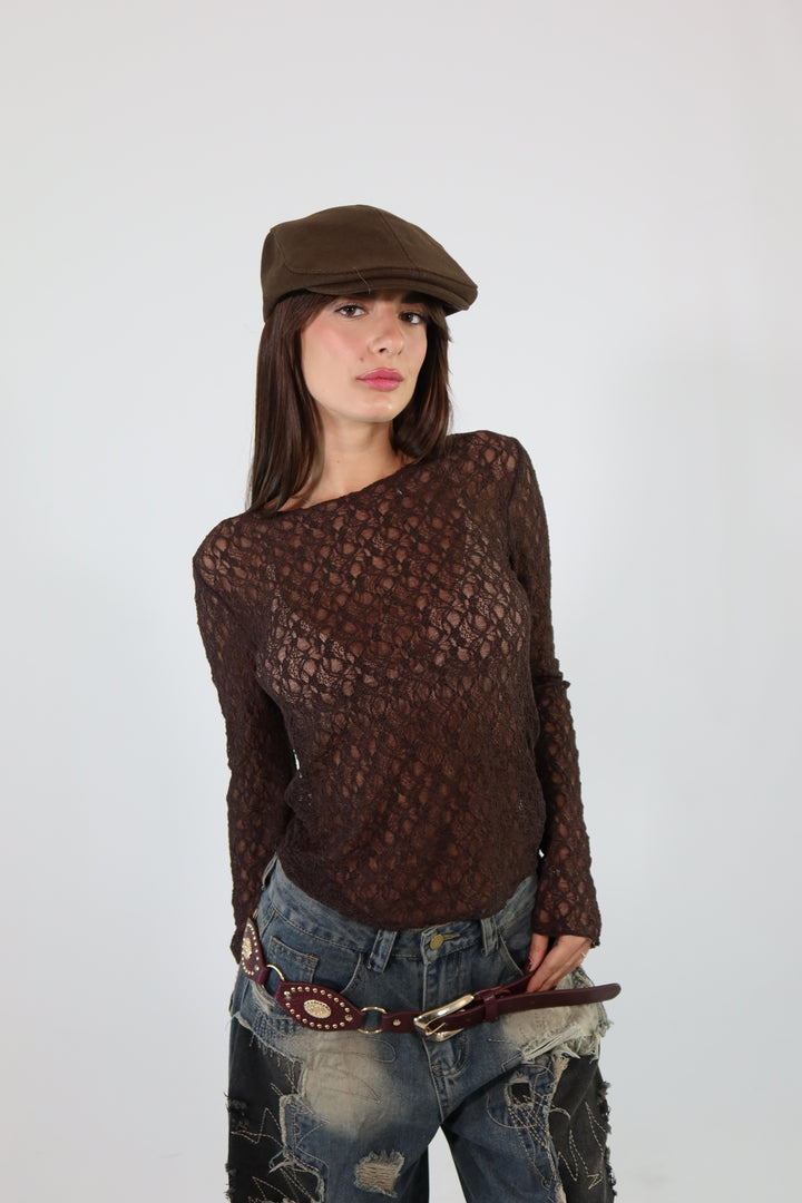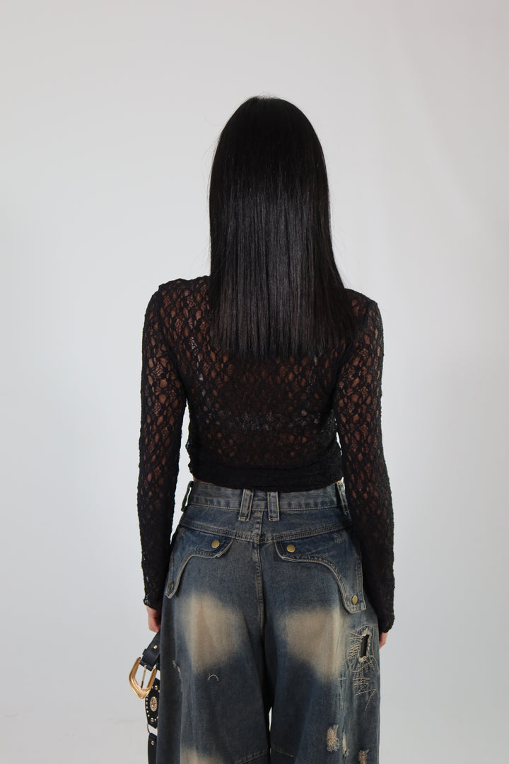 Maglietta trasparente in pizzo, si adatta dalla XS ad una taglia M/L.