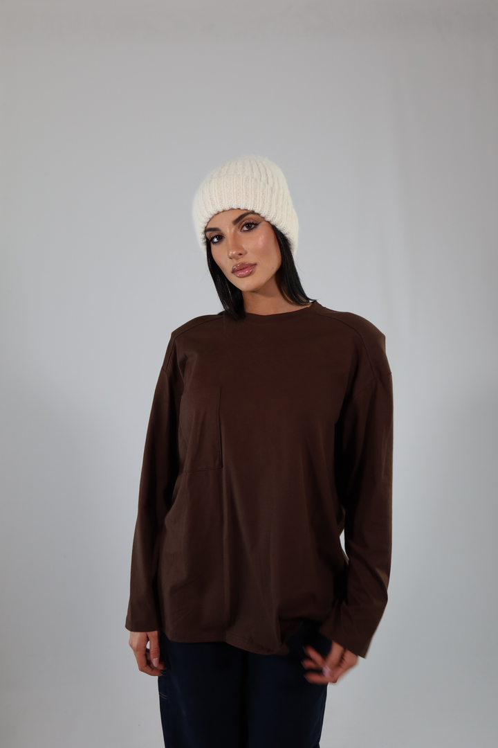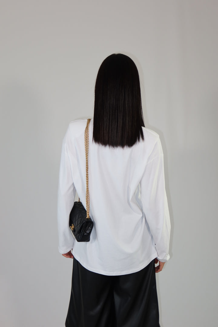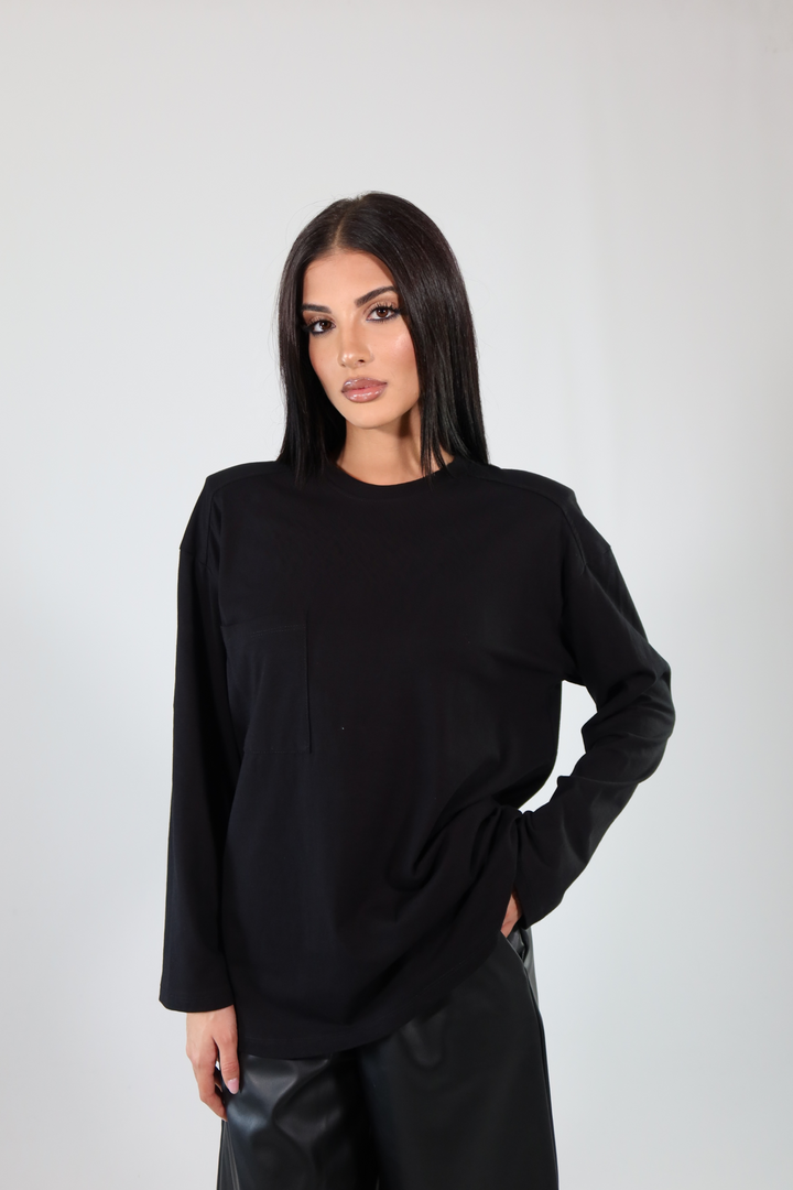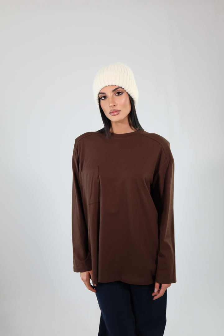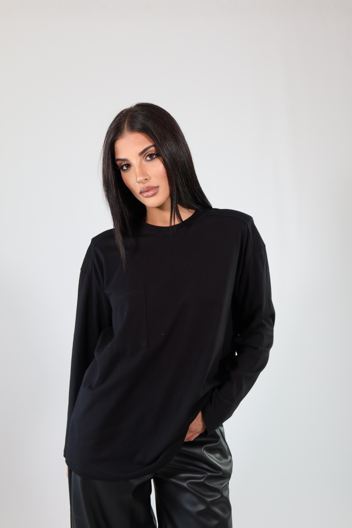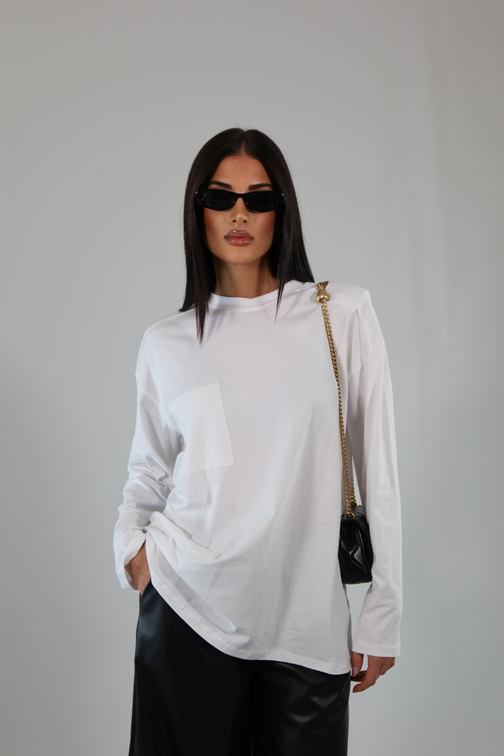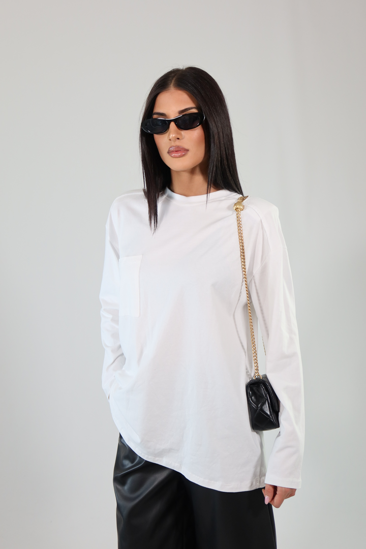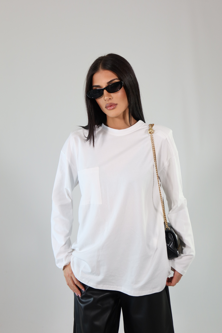 Maglia 95% cotone con taschino cucito e spalline imbottite.
