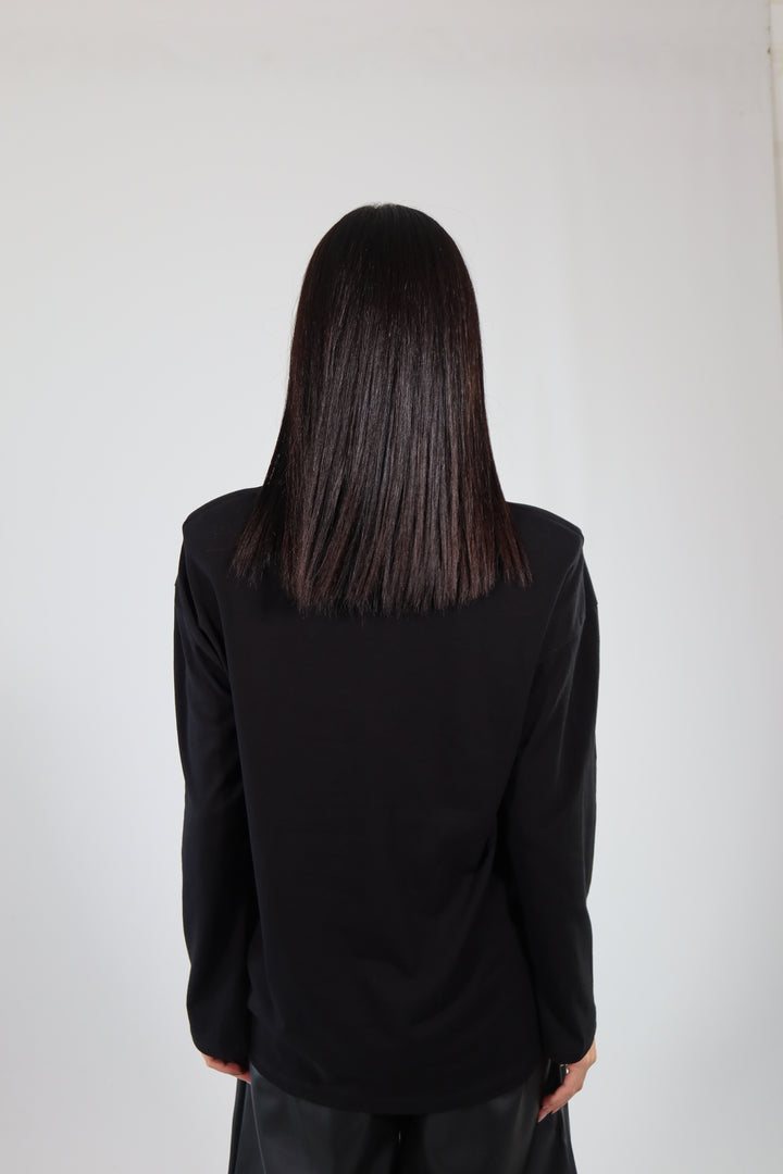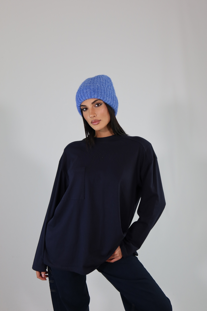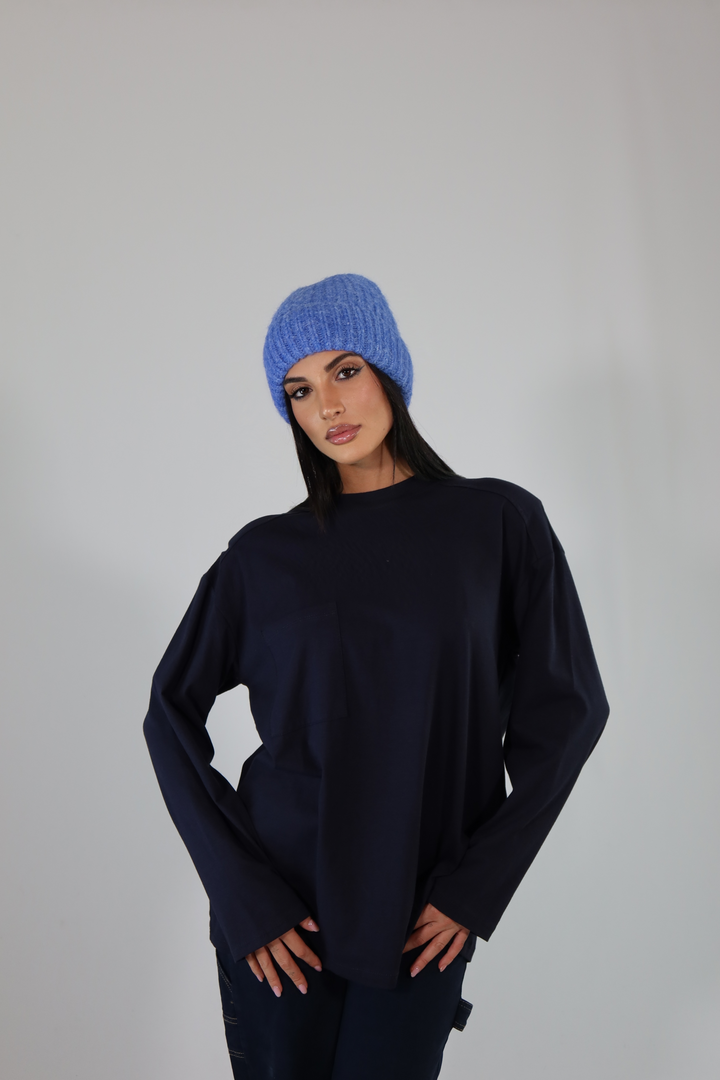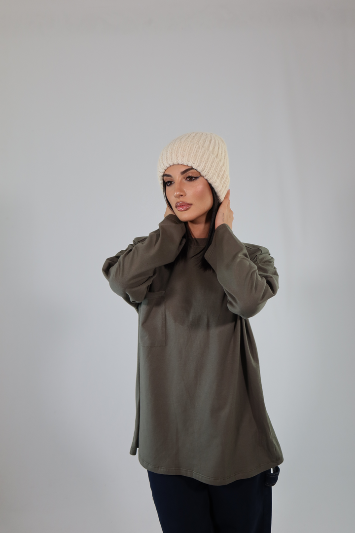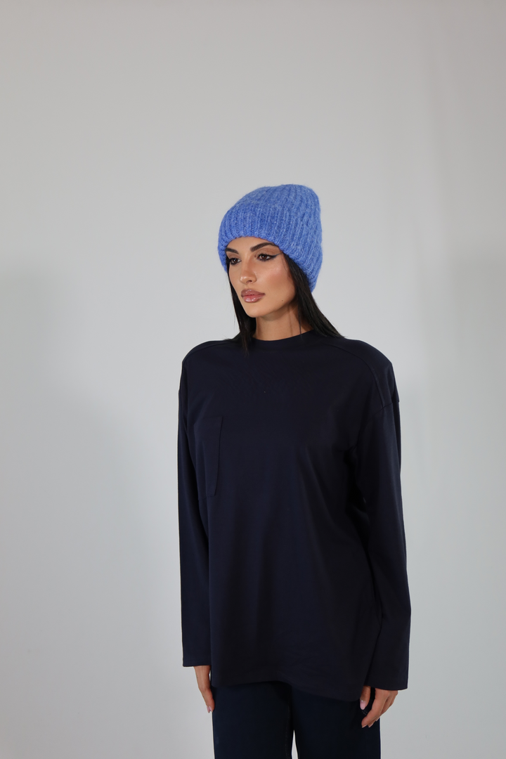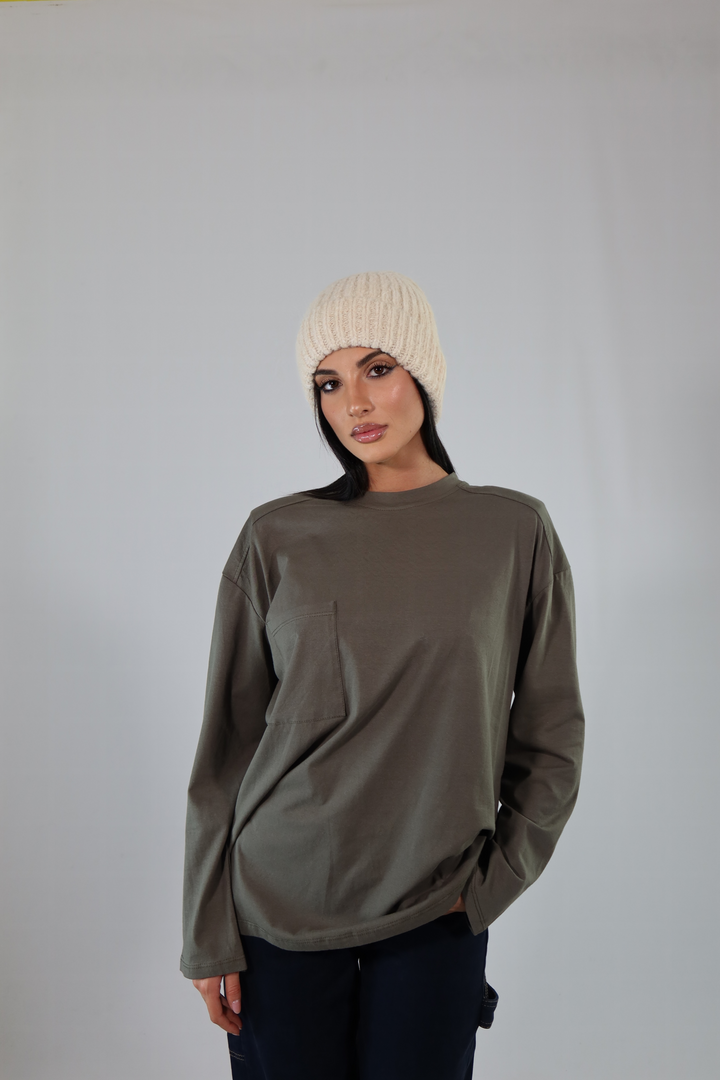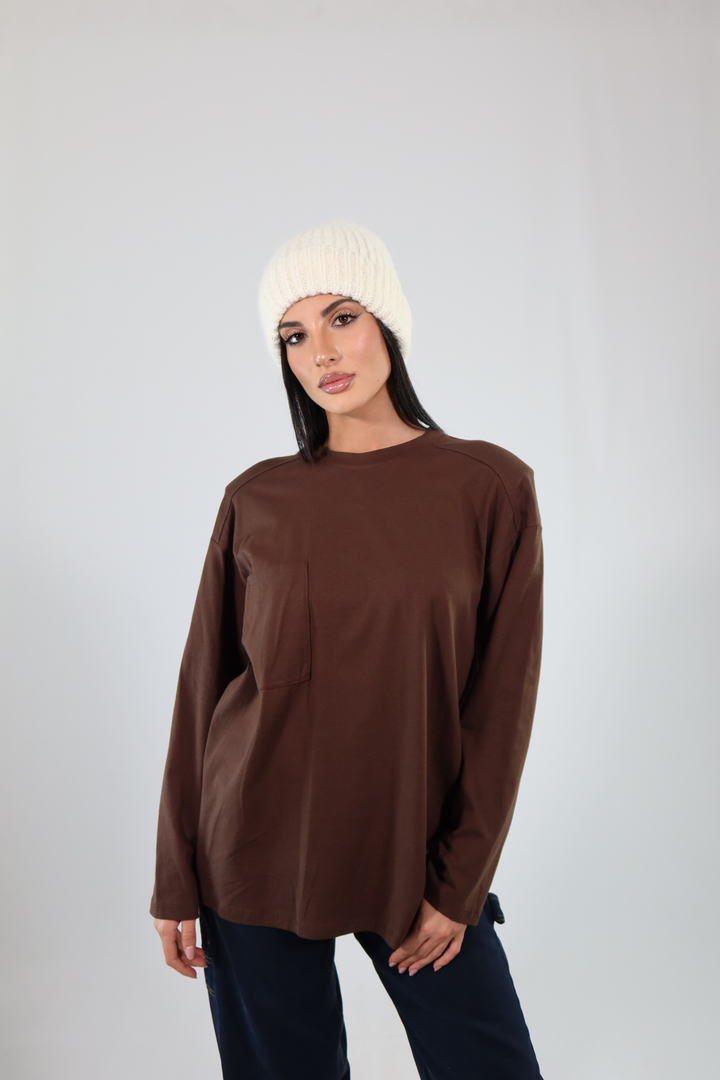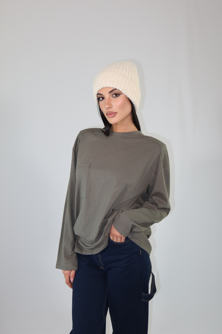Maglia 95% cotone con taschino cucito e spalline imbottite.