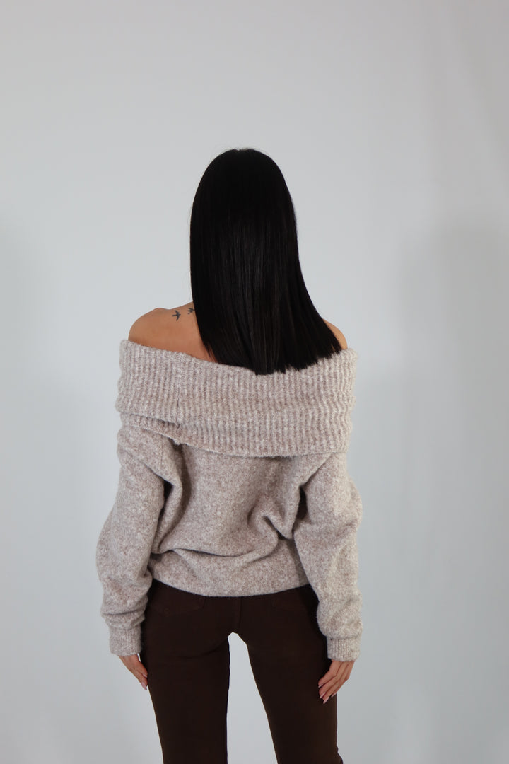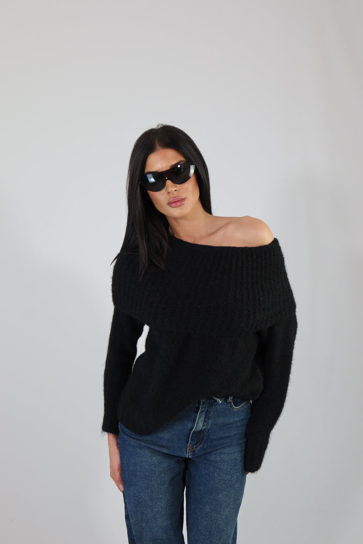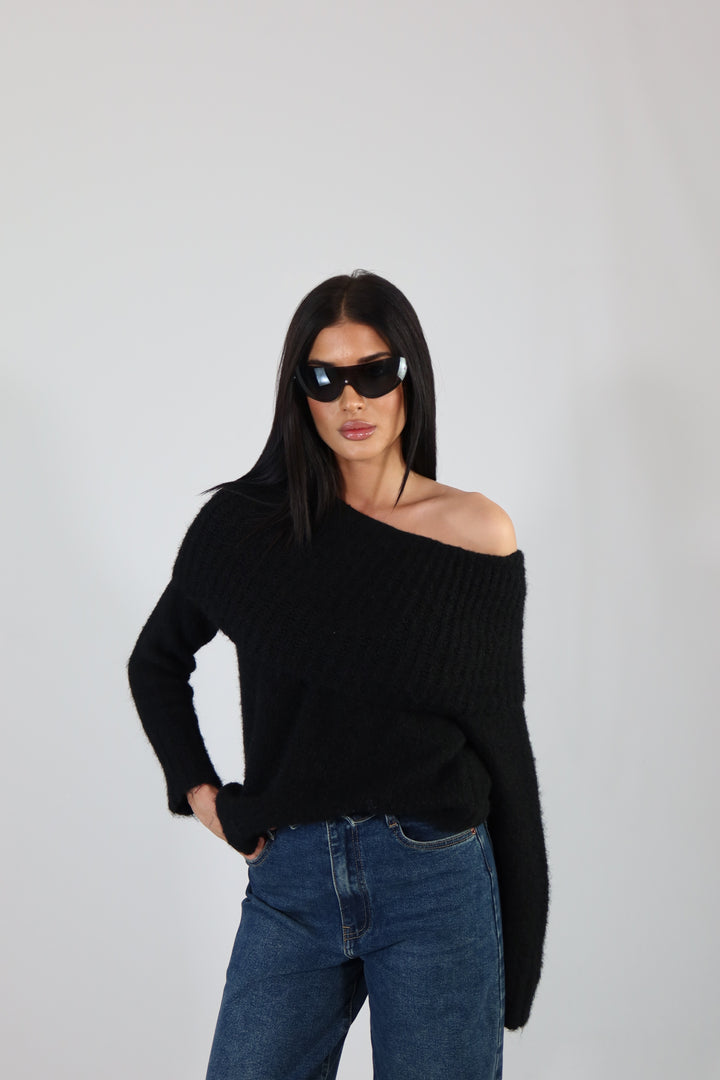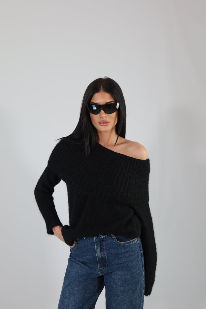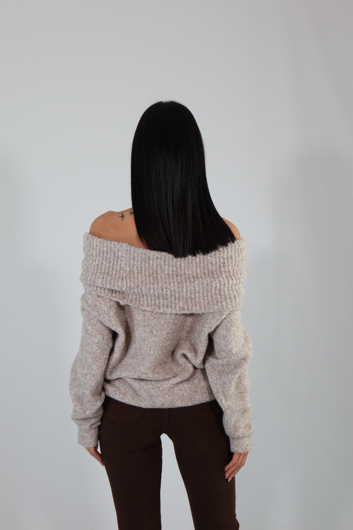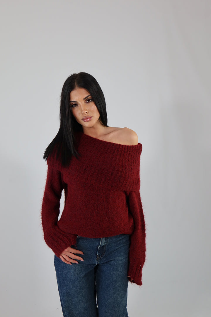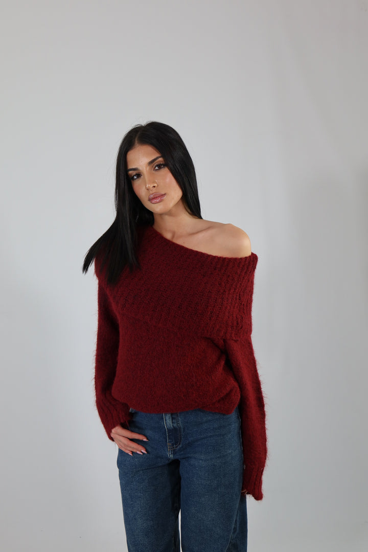 Maglione con scollo a barca morbido. Si adatta dalla XS ad una taglia M/L.