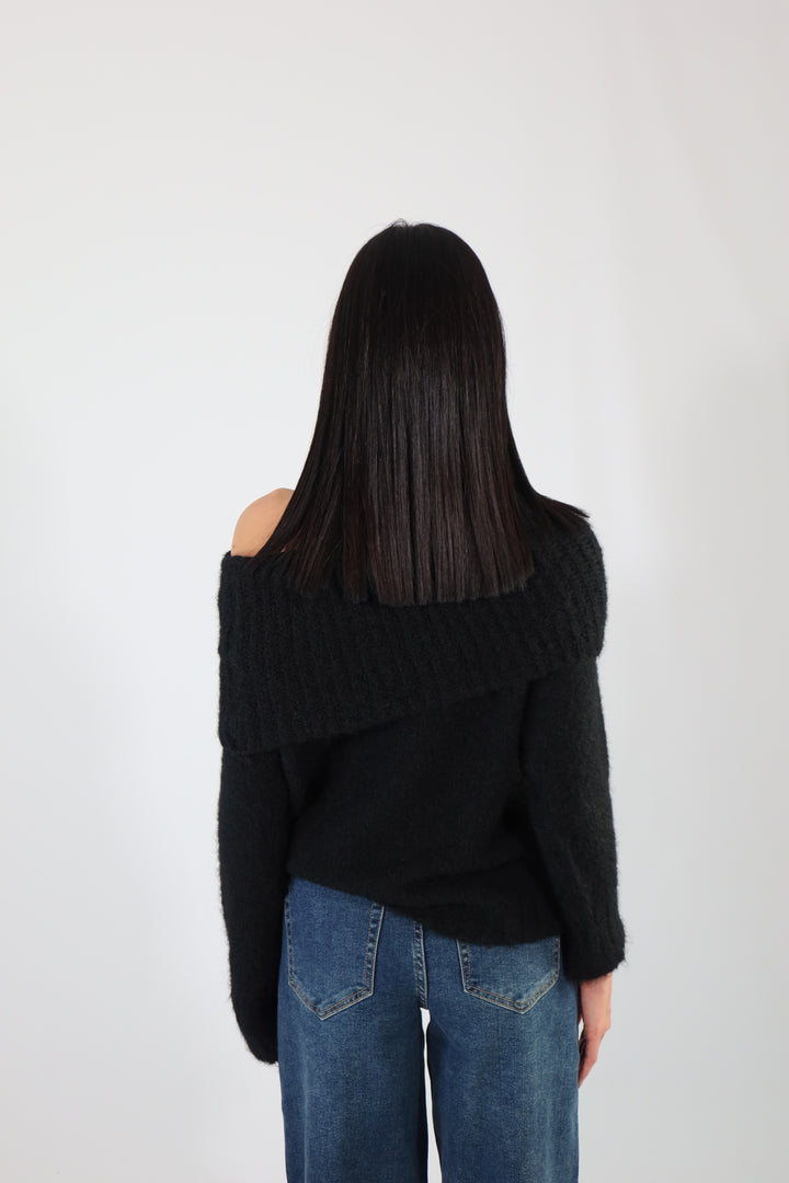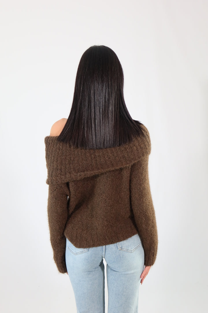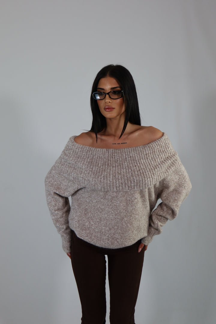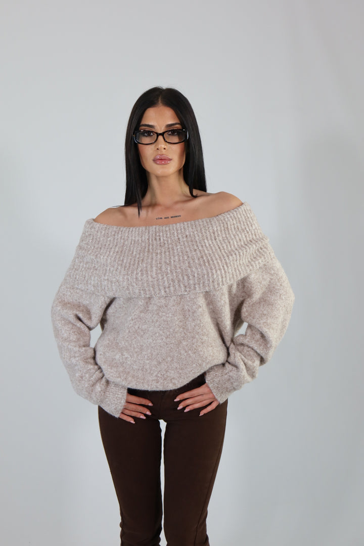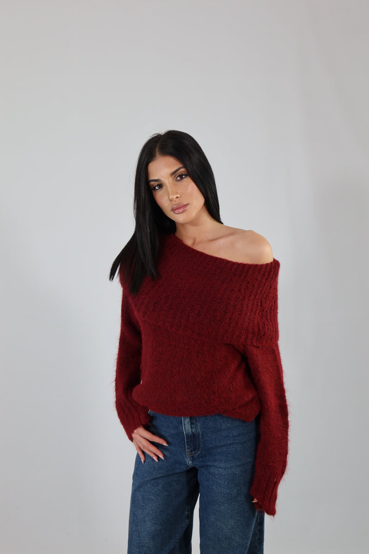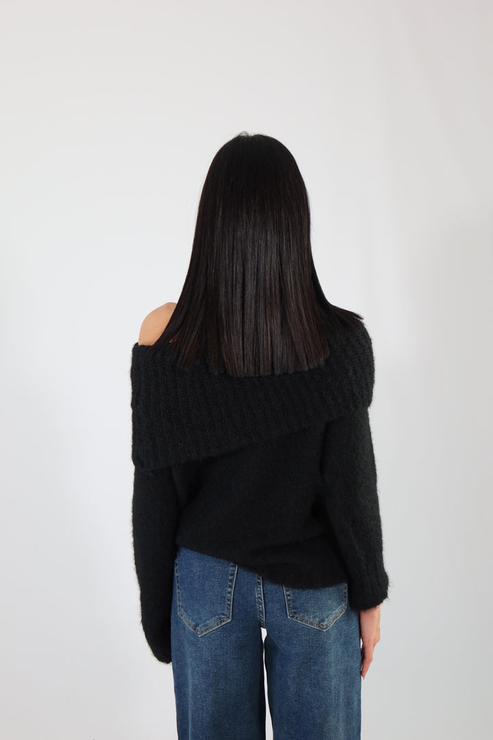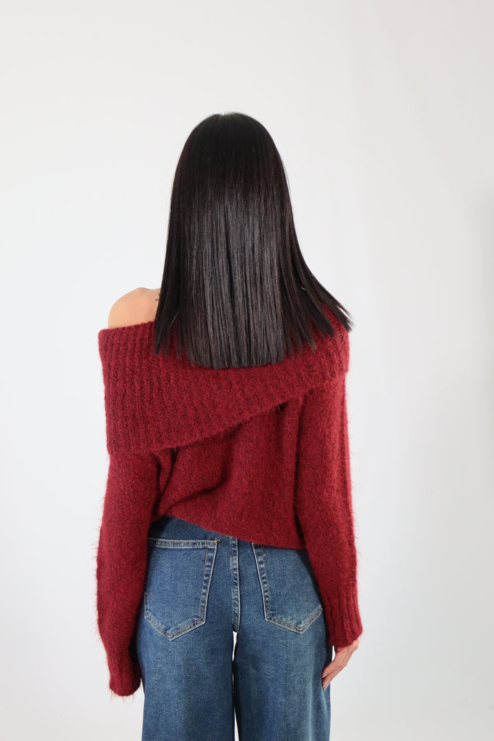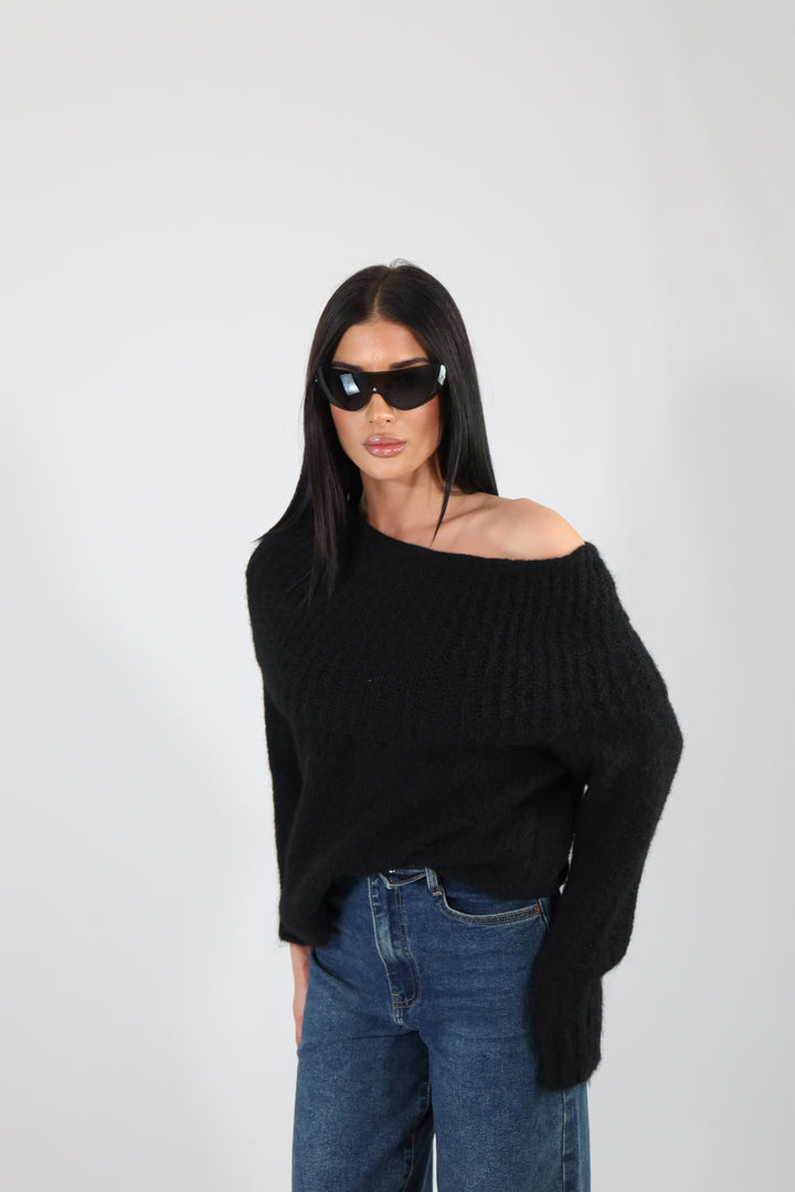 Maglione con scollo a barca morbido. Si adatta dalla XS ad una taglia M/L.
