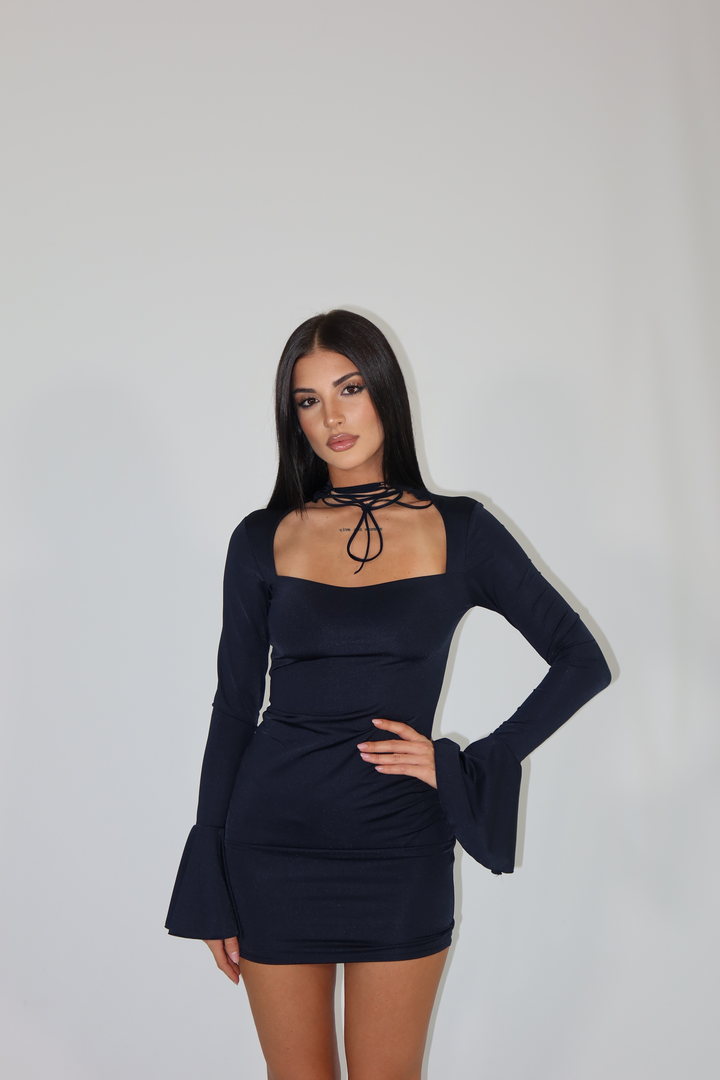 Mini dress in tessuto aderente ed elasticizzato, si adatta dalla XS alla taglia M/L.