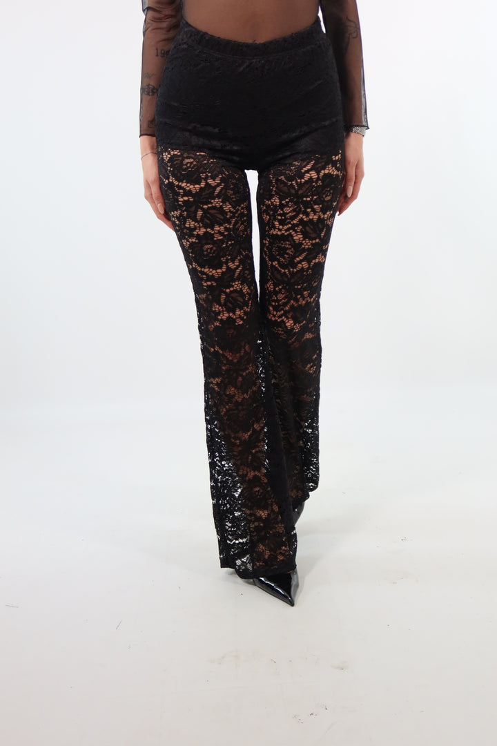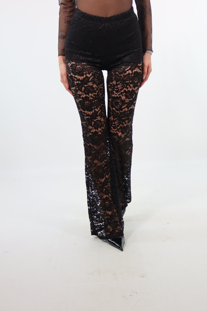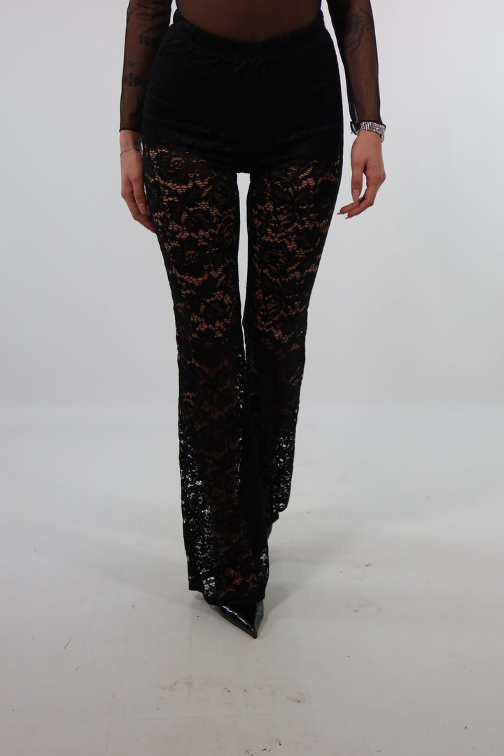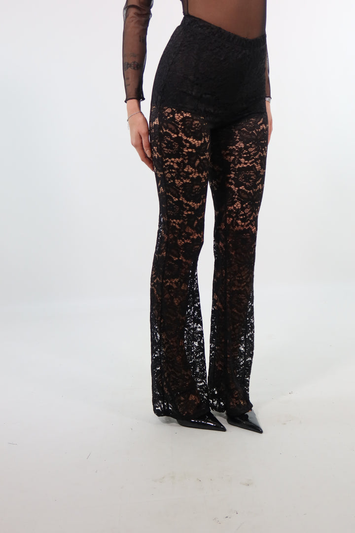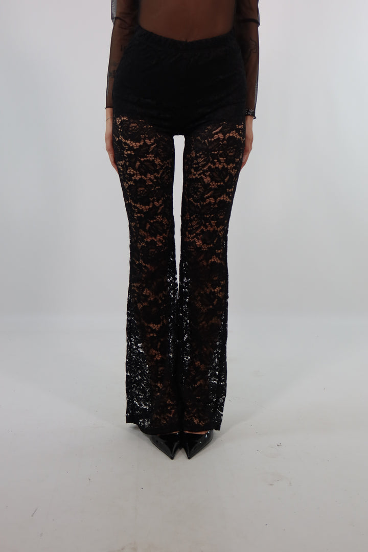 Panta di pizzo con culotte cucita. Si adatta dalla XS ad una taglia M/L. Per rif. la modella è una taglia XS ed è alta 1.72.