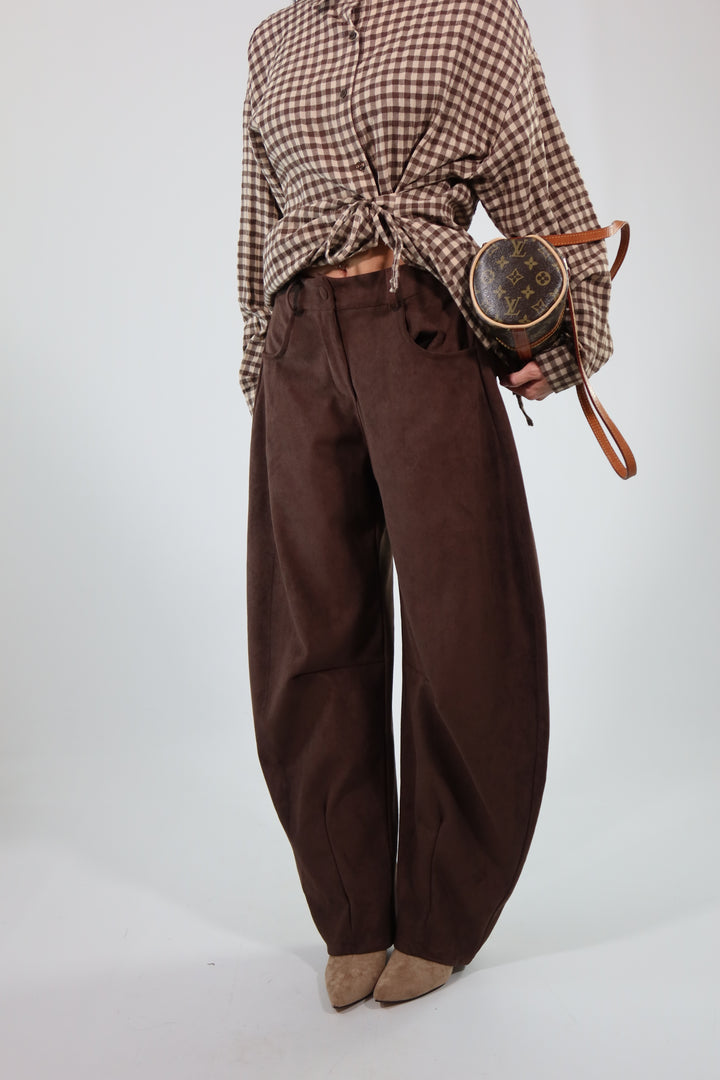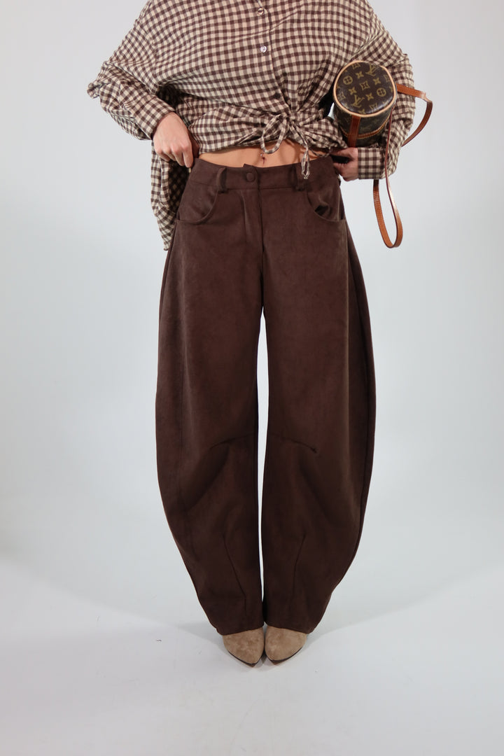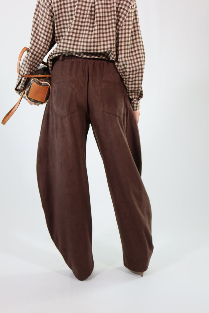 Pantalone in velluto ballon. Ha una vestibilità morbida, quindi si adatta dalla XS ad una taglia M/L.