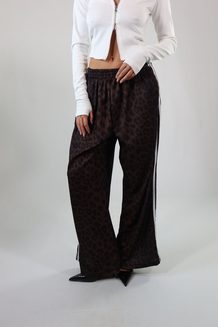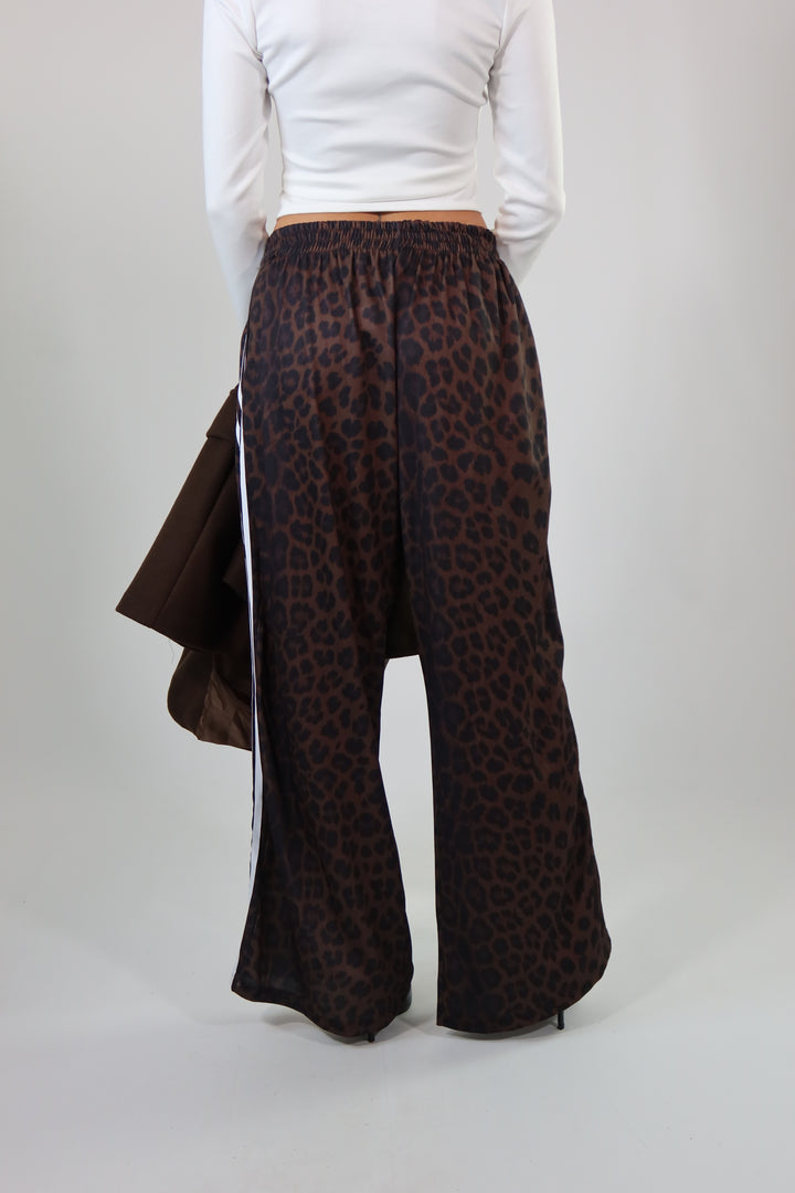 Pantalone morbido con strisce laterali a stampa animalier. Si adatta dalla XS ad una taglia M/L.