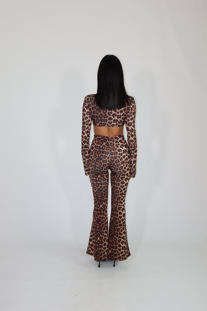 Set in tessuto aderente ed elasticizzato a stampa animalier. Si adatta dalla XS ad una taglia M/L.