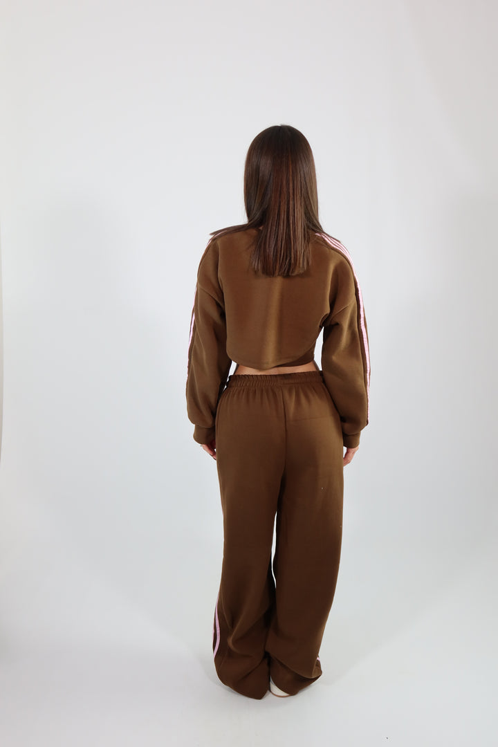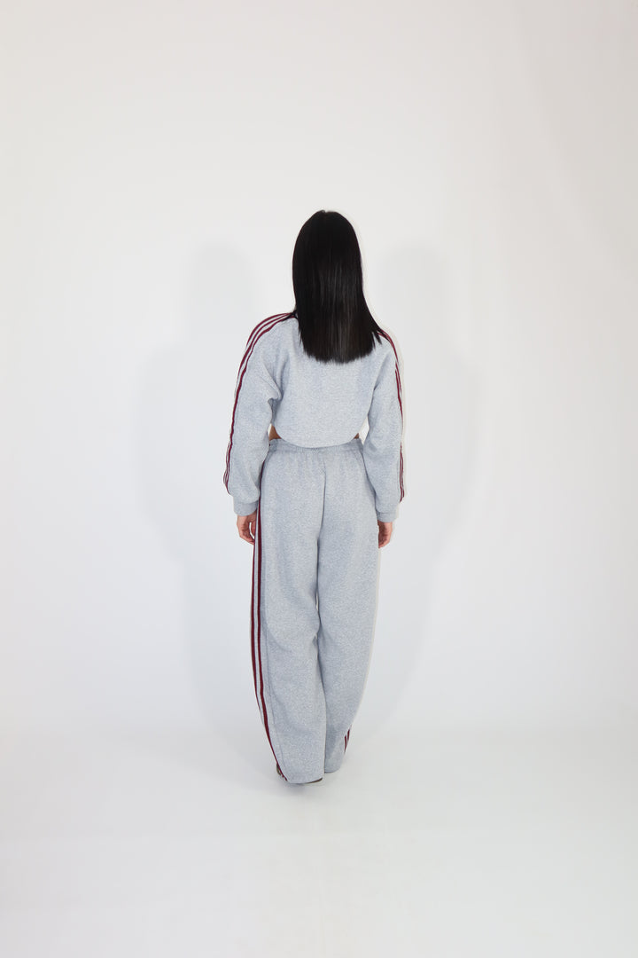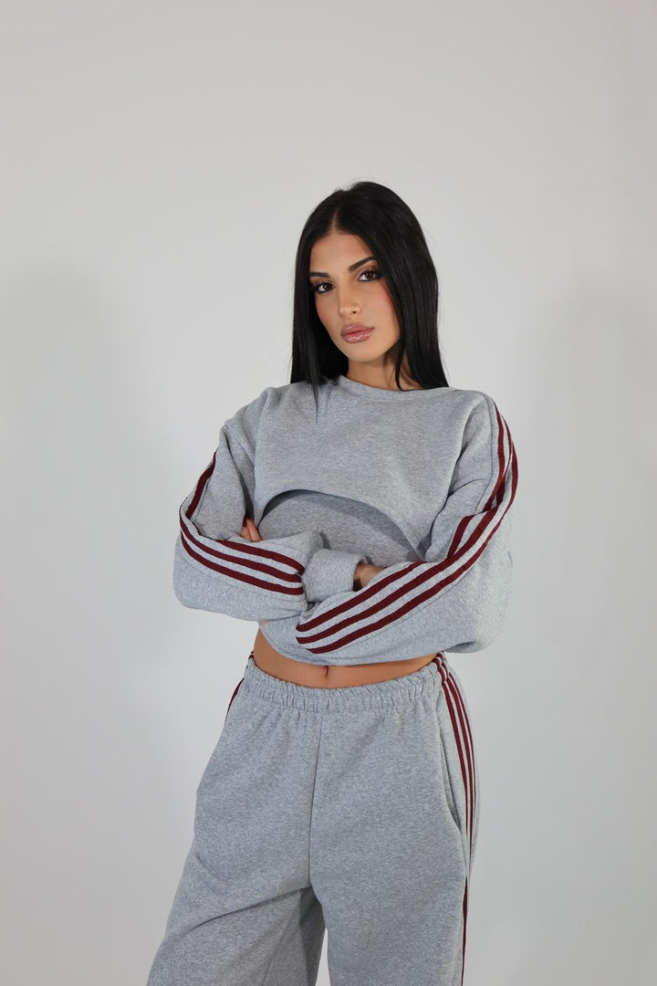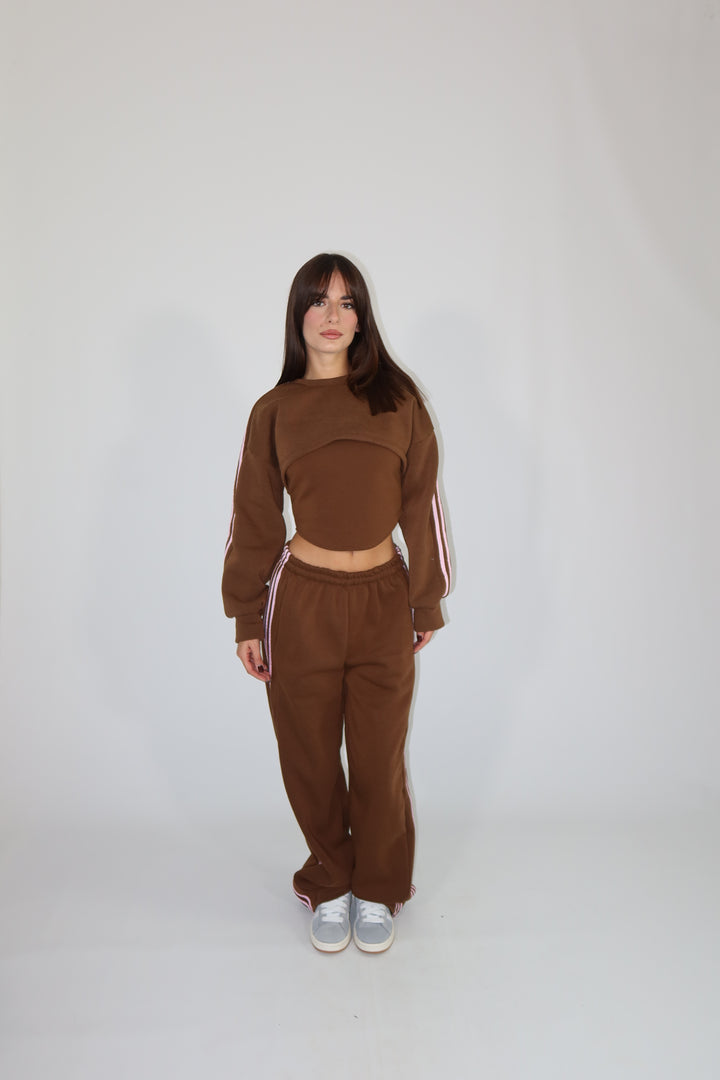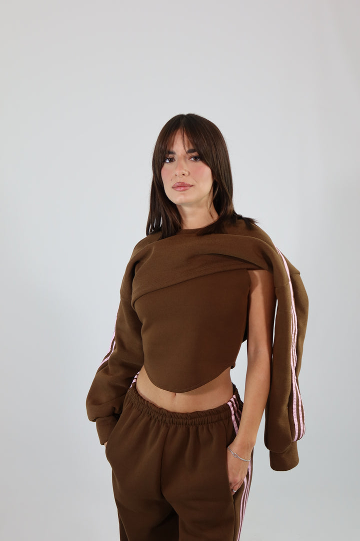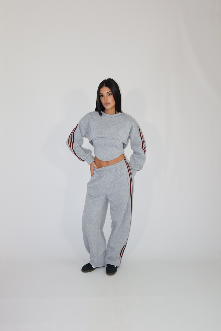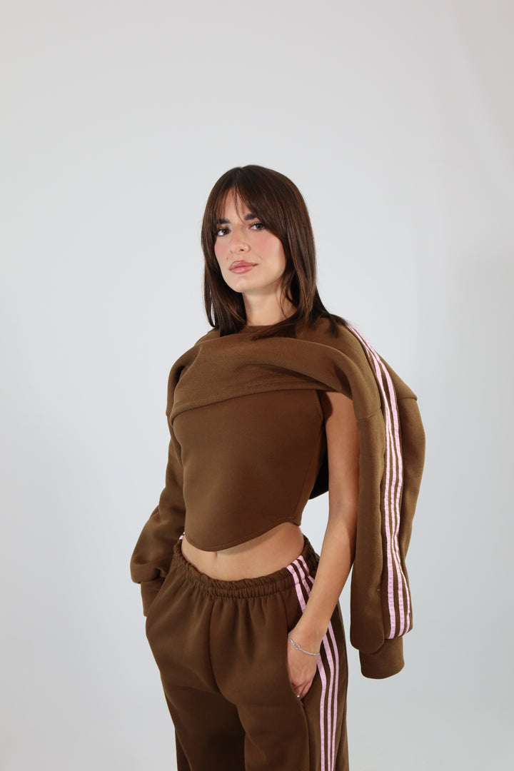 Tris felpato: canotta, felpa e pantalone morbido con strisce laterali. Si adatta dalla XS ad una taglia M/L.